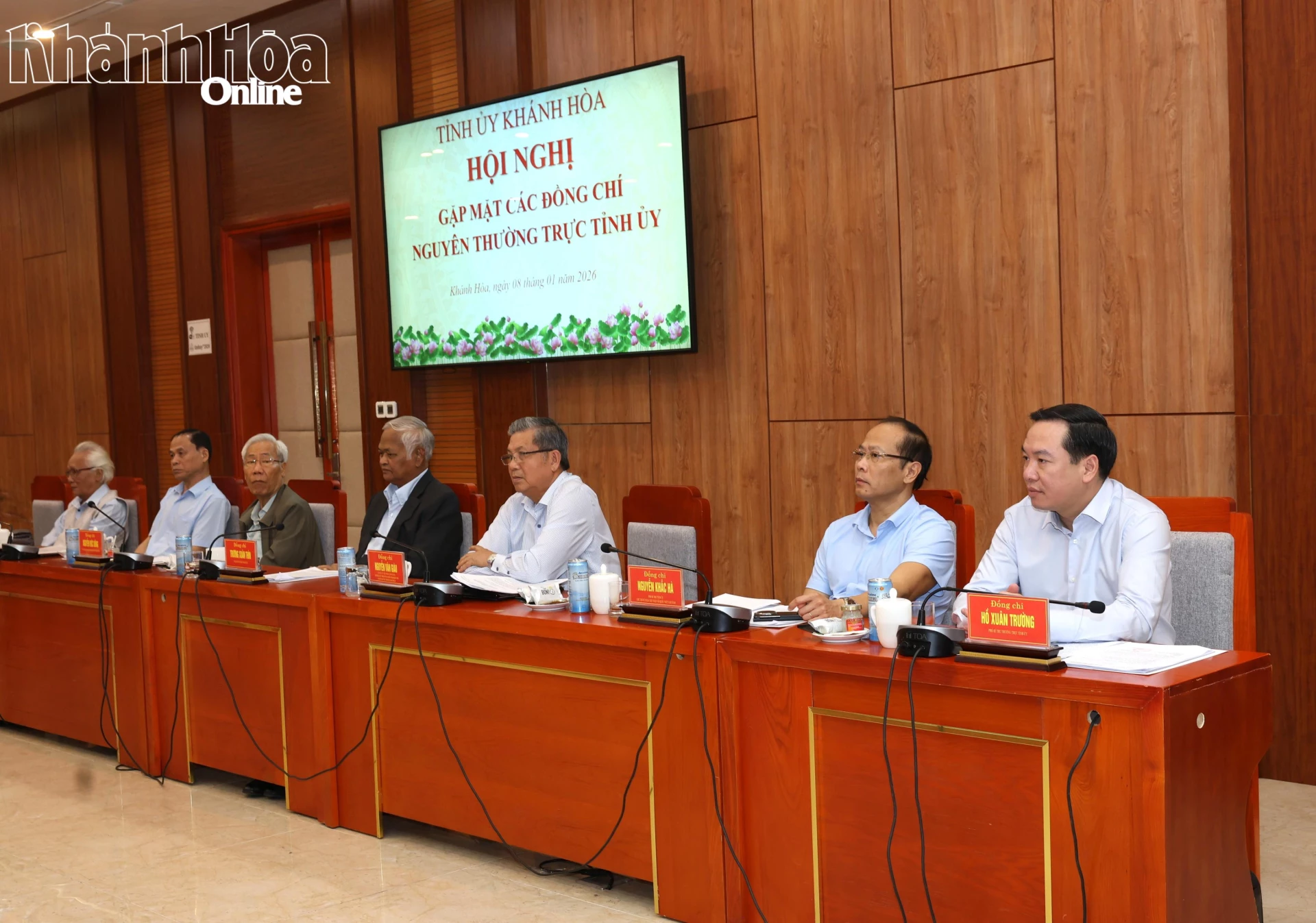 Chiều 8-1, Ban Thường vụ Tỉnh ủy Khánh Hòa tổ chức gặp mặt các đồng chí nguyên Thường trực Tỉnh ủy. Các đồng chí: Nghiêm Xuân Thành - Ủy viên Trung ương Đảng, Bí thư Tỉnh ủy; Hồ Xuân Trường - Phó Bí thư Thường trực Tỉnh ủy; Lâm Đông - Phó Bí thư Tỉnh ủy, Chủ tịch HĐND tỉnh; Trần Phong - Phó Bí thư Tỉnh ủy, Chủ tịch UBND tỉnh; Nguyễn Khắc Hà - Phó Bí thư Tỉnh ủy, Chủ tịch Ủy ban MTTQ Việt Nam tỉnh chủ trì buổi gặp mặt.
