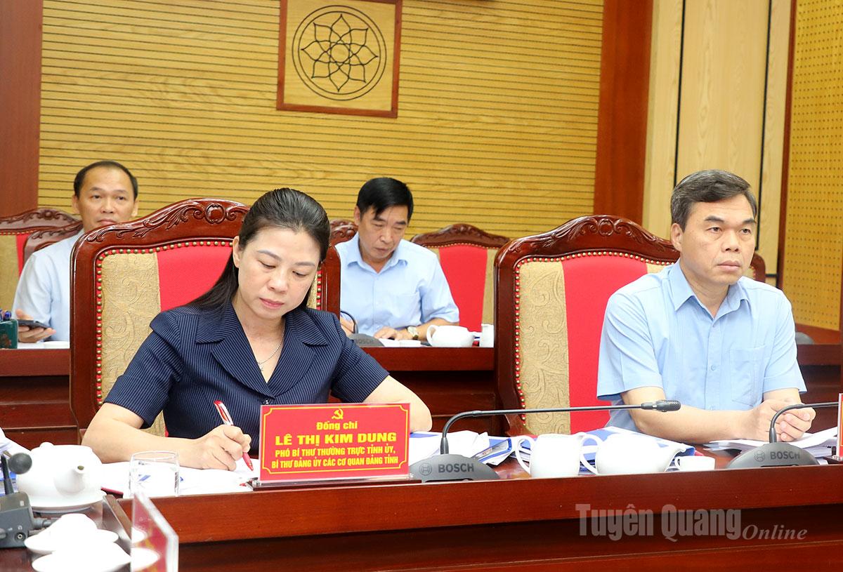 Dự họp có các đồng chí: Lê Thị Kim Dung, Phó Bí thư Thường trực Tỉnh ủy; Phan Huy Ngọc, Phó Bí thư Tỉnh ủy, Chủ tịch UBND tỉnh; Ma Thế Hồng, Phó Bí thư Tỉnh ủy, Chủ tịch Ủy ban MTTQ tỉnh; các đồng chí Ủy viên Ban Thường vụ Tỉnh ủy; đại diện các Ban xây dựng Đảng Trung ương theo dõi tỉnh Tuyên Quang.