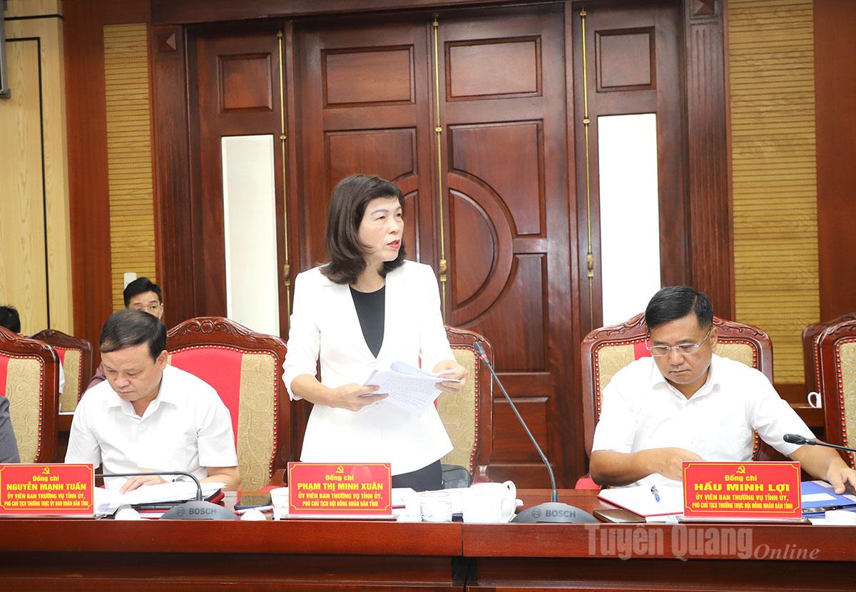 Phó Chủ tịch HĐND tỉnh Phạm Thị Minh Xuân thảo luận tại hội nghị.