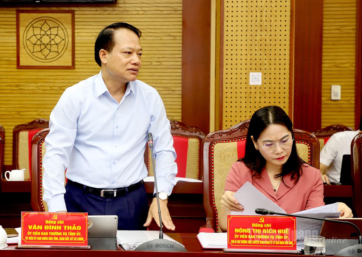 Giám đốc Sở Tài chính Vân Đình Thảo thảo luận tại hội nghị.