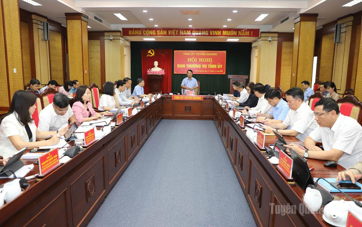 Tại hội nghị, các đồng chí trong Ban Thường vụ Tỉnh ủy đã tập trung cho ý kiến vào các Tờ trình thuộc lĩnh vực xây dựng Đảng gồm: Tờ trình số 96 của Văn phòng Tỉnh ủy về việc Ban hành Quy chế theo dõi, đôn đốc, kiểm tra việc thực hiện nhiệm vụ do Ban Chấp hành Đảng bộ tỉnh, Ban Thường vụ Tỉnh ủy, Thường trực Tỉnh ủy, đồng chí Bí thư Tỉnh ủy giao trên Hệ thống theo dõi, đánh giá của Trung ương dựa trên dữ liệu và theo thời gian thực; Tờ trình số 119 của Ban Tuyên giáo và Dân vận Tỉnh ủy về việc ban hành Công văn của Ban Thường vụ Tỉnh ủy về triển khai thực hiện Chỉ thị số 59, ngày 22/01/2026 của Ban Bí thư Trung ương Đảng về công tác đối với đồng bào dân tộc trong giai đoạn mới; Tờ trình số 122 về việc ban hành Kế hoạch tổ chức Giải báo chí về xây dựng Đảng của Đảng bộ tỉnh Tuyên Quang lần thứ I năm 2026 và Quyết định thành lập Ban Tổ chức Giải báo chí; Tờ trình số 02 về xin chủ trương thông qua Báo cáo kết quả kiểm tra và Thông báo Kết luận kiểm tra đổi với Đảng ủy Sở Văn hóa, Thể thao và Du lịch.