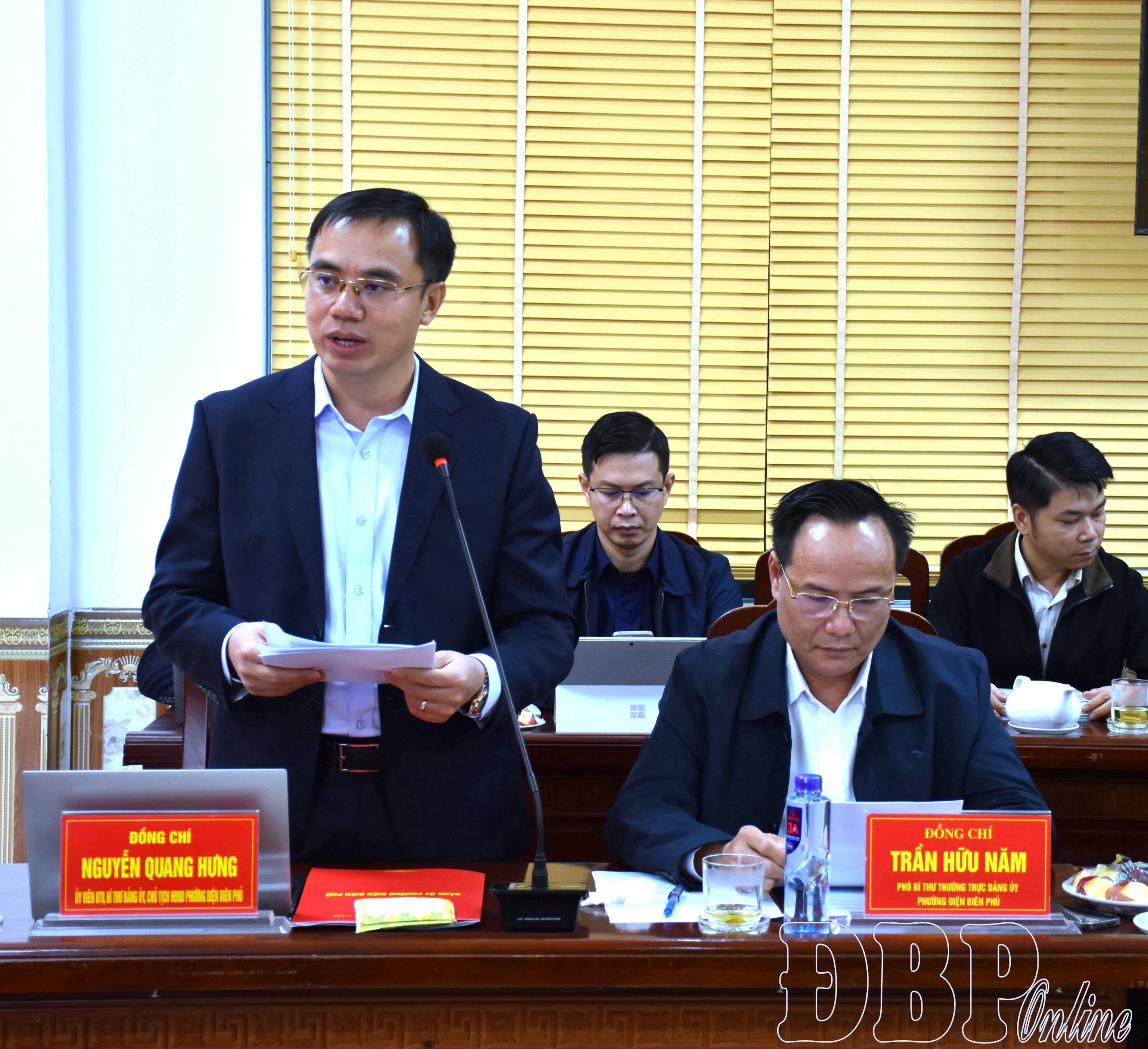 Bí thư Đảng ủy phường Điện Biên Phủ báo cáo tình hình thực hiện nhiệm vụ từ đầu năm đến nay; phương hướng, nhiệm vụ trọng tâm những tháng cuối năm 2025.