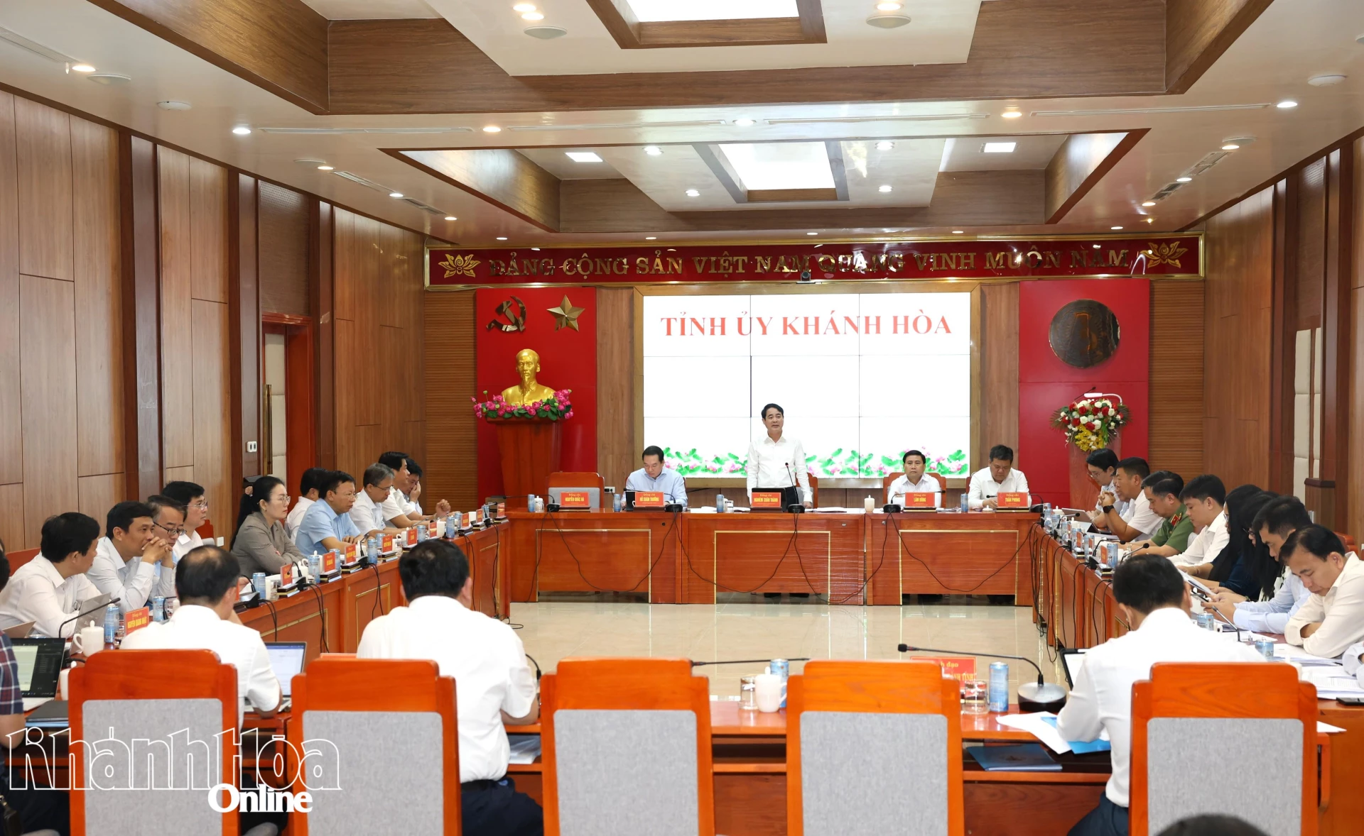 Phát biểu tại buổi làm việc, Bí thư Tỉnh ủy Nghiêm Xuân Thành đánh giá cao kết quả thực hiện nhiệm vụ phát triển kinh tế - xã hội năm 2025 của Thường trực HĐND và UBND tỉnh; đồng thời phân tích, chỉ rõ những hạn chế trong việc điều hành, triển khai thực hiện các nhiệm vụ phát triển kinh tế - xã hội của tỉnh. Triển khai nhiệm vụ năm 2026, Bí thư Tỉnh ủy Nghiêm Xuân Thành đề nghị Thường trực HĐND, UBND tỉnh cần thống nhất về nhận thức và quyết tâm trong hành động, từ đó đề ra những nhiệm vụ, giải pháp để khắc phục những hạn chế được chỉ ra. Trong đó, cần đổi mới, hoàn thiện về công tác quản trị, điều hành theo hướng quản lý toàn diện, trách nhiệm phải cụ thể, điều hành phải sâu sát; nâng cao năng lực tham mưu; tăng cường điều phối, đôn đốc, giám sát, đánh giá và cụ thể hóa trách nhiệm… Đồng thời, đồng chí Nghiêm Xuân Thành đề nghị UBND tỉnh nâng cao hiệu quả chỉ đạo điều hành, tăng cường kỷ cương, kỷ luật hành chính; hoàn thiện quy chế làm việc của UBND tỉnh và các cơ quan, đơn vị trực thuộc đảm bảo đầy đủ, rõ ràng, tổ chức triển khai thực hiện đúng quy chế; đổi mới phương thức làm việc, chuyển từ tư duy hành chính sáng tư duy phục vụ. Đồng chí Nghiêm Xuân Thành cũng yêu cầu tiếp tục tăng cường phân cấp, phân quyền; thực hiện phân cấp, phân quyền đi đôi với phân bổ nguồn lực và tăng cường giám sát, kiểm tra để giảm tầng nấc trung gian, nâng cao năng lực chủ động của cấp dưới; cá thể hóa trách nhiệm của người đứng đầu gắn với tăng cường kiểm tra giám sát; nâng cao chất lượng đội ngũ cán bộ thật sự có phẩm chất, năng lực, tư duy, uy tín ngang tầm nhiệm vụ, đáp ứng yêu cầu phát triển trong tình hình mới; tăng cường kiểm tra, giám sát, chỉ đạo thực hiện nghiêm công tác chấm điểm, đánh giá kết quả, hiệu quả công việc qua KPI để tạo chuyển biến thực chất, khách quan trong đánh giá, xếp loại chất lượng cán bộ; gắn đánh giá, xếp loại với thực hiện liên thông trong công tác cán bộ nhằm bố trí sắp xếp cán bộ phù hợp với vị trí việc làm, quy hoạch, luân chuyển, bổ nhiệm, bổ nhiệm lại và tinh giản biên chế…; kiên quyết, có giải pháp ứng xử đối với cán bộ thiếu trách nhiệm, đùn đẩy, né tránh trách nhiệm, xử lý nghiêm các trường hợp vi phạm. Bên cạnh đó, đẩy mạnh ứng dụng công nghệ thông tin, chuyển đổi số trong quản lý điều hành, triển khai đồng bộ phần mềm quản lý văn bản, phòng họp trực tuyến… Đồng chí Nghiêm Xuân Thành yêu cầu tập trung nguồn lực, tăng cường lãnh đạo, chỉ đạo để nâng tầm phát triển, sớm đưa tỉnh Khánh Hòa trở thành thành phố trực thuộc Trung ương…