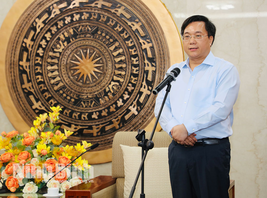Đồng chí Đặng Xuân Phong, Ủy viên Trung ương Đảng, Bí thư Tỉnh ủy, Trưởng Đoàn đại biểu Quốc hội tỉnh Ninh Bình phát biểu tại buổi làm việc.