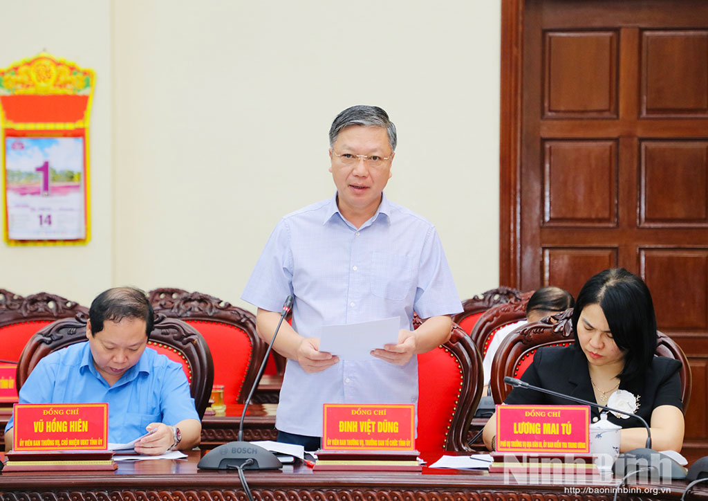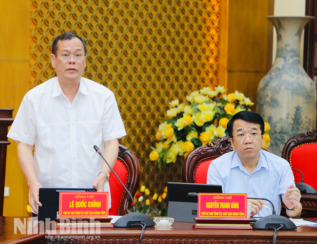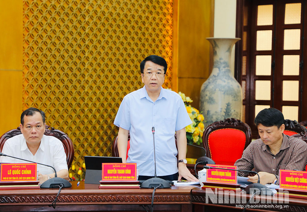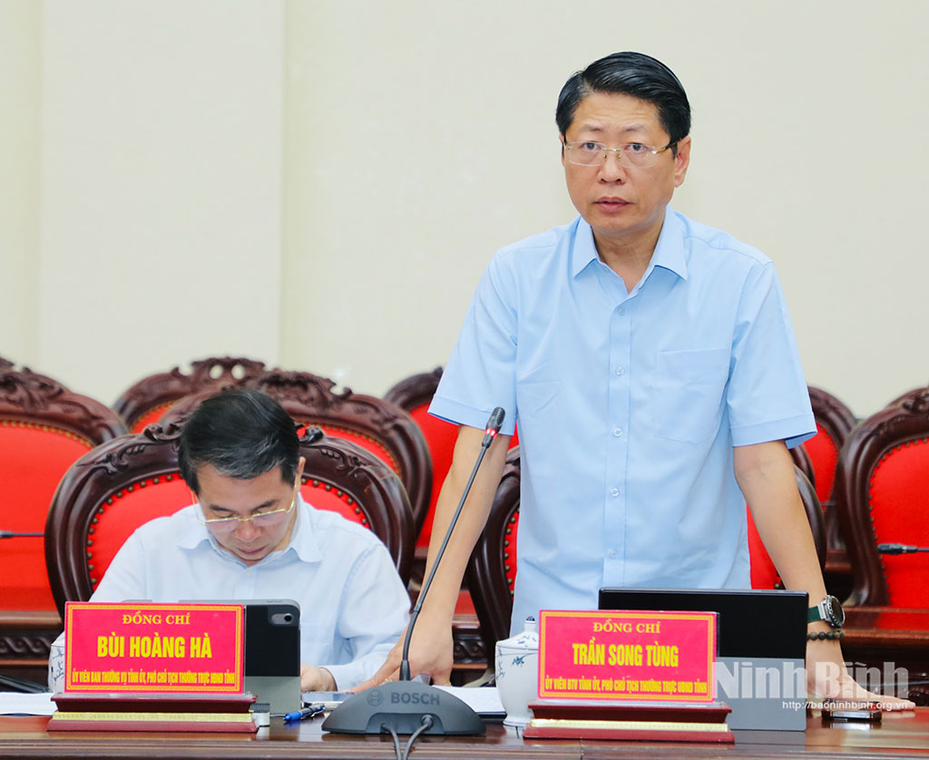 Đồng chí Bí thư Tỉnh ủy nêu rõ, để thực hiện toàn diện các chương trình công tác, nhất là thực hiện hiệu quả 10 Nghị quyết chuyên đề của Tỉnh ủy, Ban Thường vụ Tỉnh ủy mới ban hành và các kế hoạch thực hiện Nghị quyết, đề nghị các tổ chức đảng, các cấp, các ngành, cơ quan, đơn vị, địa phương cần chủ động, sáng tạo triển khai những nhiệm vụ, giải pháp cụ thể, phù hợp với điều kiện thực tiễn. Tập trung khắc phục ngay những điểm nghẽn liên quan đến công tác giải phóng mặt bằng, giải ngân vốn đầu tư công, tăng nguồn thu vào ngân sách Nhà nước. Sớm ban hành kế hoạch thực hiện quy hoạch tỉnh; chú trọng thu hút đầu tư theo hướng chọn lọc; tăng cường kỷ luật, kỷ cương hành chính trong lãnh đạo, chỉ đạo, điều hành công việc. Đề nghị các đồng chí Ủy viên Ban Thường vụ Tỉnh ủy dành nhiều thời gian nghiên cứu các chủ trương, chính sách lớn; tiếp tục tậm tâm với công việc; tập trung lãnh đạo, chỉ đạo các địa bàn, lĩnh vực được giao phụ trách, hướng đến mục tiêu chung là xây dựng tỉnh Ninh Bình trở thành thành phố trực thuộc Trung ương trước năm 2030.