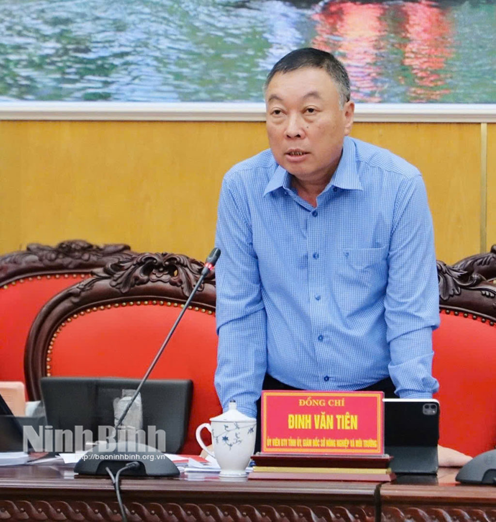 Đồng chí Đinh Văn Tiên, Ủy viên Ban Thường vụ Tỉnh ủy, Giám đốc Sở Nông nghiệp và Môi trường phát biểu tại hội nghị.
