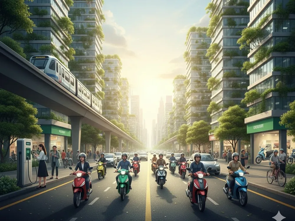 VCCI đề nghị bổ sung sản xuất xe máy điện vào tỉ lệ chuyển giao tín chỉ carbon quốc tế. Ảnh minh họa AI