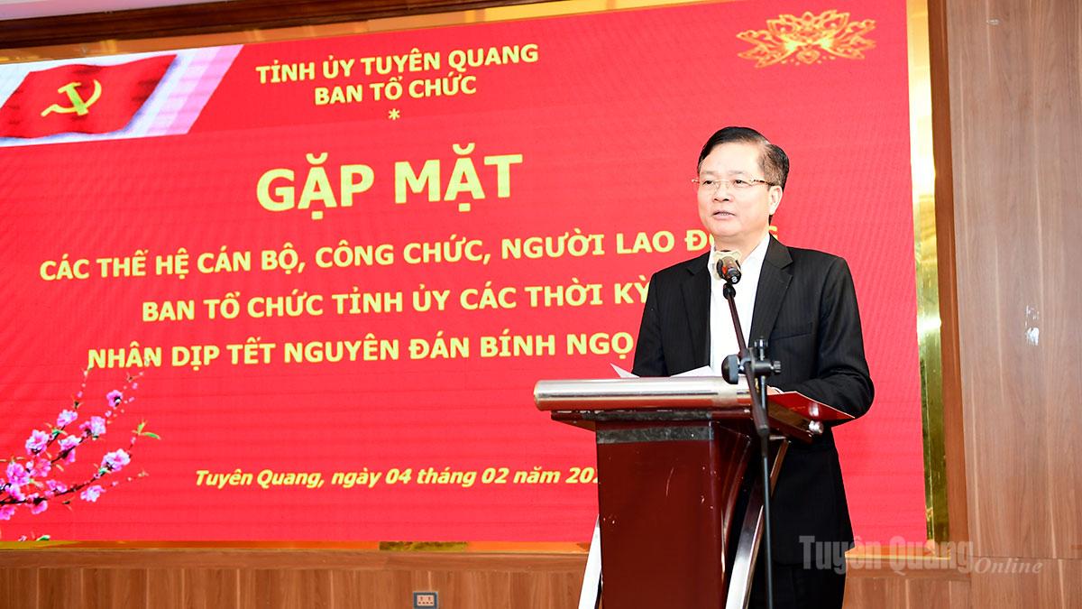 Phát biểu tại buổi gặp mặt, đồng chí Trưởng Ban Tổ chức Tỉnh ủy đã gửi lời chúc mừng thân tình, ấm áp, trân trọng ghi nhận, cảm ơn và tri ân những đóng góp quan trọng của các đồng chí nguyên lãnh đạo, các thế hệ cán bộ, công chức, người lao động qua các thời kỳ đối với sự phát triển của Ban Tổ chức Tỉnh ủy nói riêng và công tác xây dựng Đảng của tỉnh nói chung.