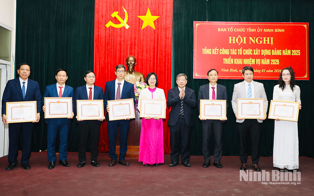 Năm 2025, ngành Tổ chức xây dựng Đảng tỉnh đã tích cực tham mưu triển khai kịp thời, hiệu quả các nhiệm vụ chính trị, nỗ lực đổi mới phương pháp, lề lối, phong cách làm việc, hoàn thành khối lượng lớn công việc, đáp ứng yêu cầu tiến độ và chất lượng. Nổi bật là đã tham mưu công tác lãnh đạo, chỉ đạo và tổ chức thành công Đại hội Đảng các cấp nhiệm kỳ 2025-2030; Đại hội Đảng bộ tỉnh lần thứ I, nhiệm kỳ 2025-2030. Ninh Bình là một trong những địa phương hoàn thành đại hội cấp xã sớm trong toàn quốc, trước kế hoạch 15 ngày; cấp tỉnh nằm trong nhóm 7 tỉnh hoàn thành sớm. Sau đại hội, đã kịp thời tham mưu kiện toàn tổ chức bộ máy, cán bộ; ban hành quy chế, quy định, chương trình hành động, bảo đảm triển khai đồng bộ các nhiệm vụ chính trị.