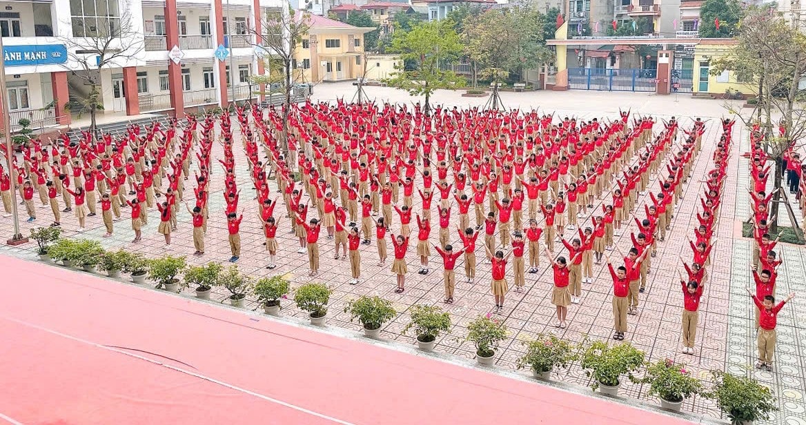 Trong tiếng nhạc sôi động, hàng nghìn bạn trẻ cùng hòa mình vào những bước nhảy rộn ràng, tạo nên khung cảnh đầy sắc màu và năng lượng. Những lá cờ nhỏ tung bay theo từng động tác, những nụ cười rạng rỡ trên gương mặt người trẻ đã biến buổi đồng diễn thành một “bức tranh sống” về tinh thần tuổi trẻ trước ngày hội bầu cử.