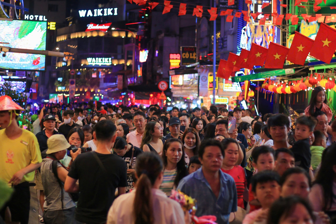 Càng về khuya, lượng người đổ về Bùi Viện càng đông.