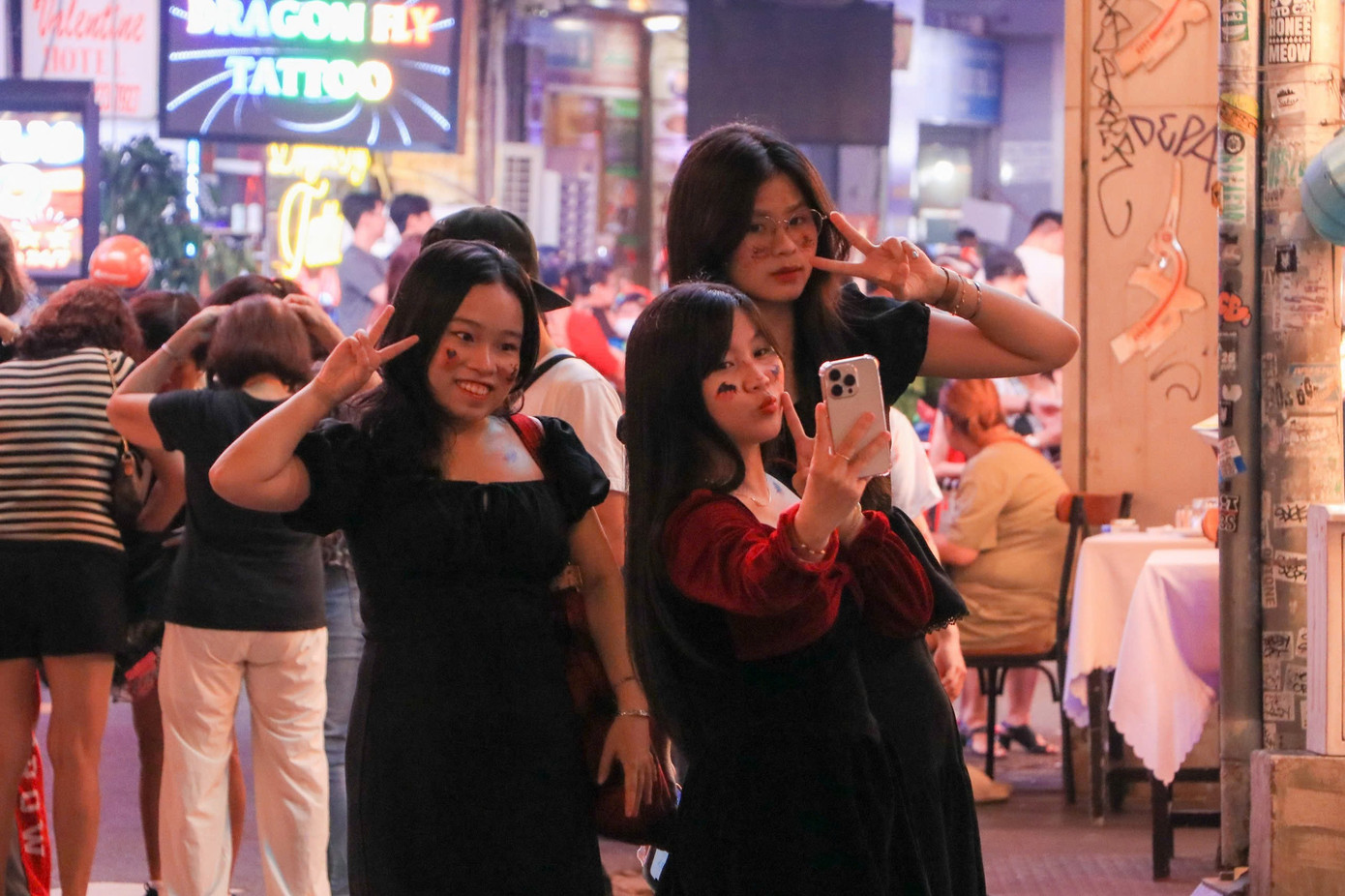 Các quán bar, nhà hàng và cửa hàng trên phố đồng loạt trang trí theo phong cách kinh dị với tông màu cam - đen, hình nộm bí ngô, bộ xương và mạng nhện giả. Nhiều du khách nước ngoài liên tục ghi hình, tỏ ra thích thú trước cảnh tượng náo nhiệt của khu phố. Bên cạnh đó, lực lượng chức năng túc trực tại nhiều chốt để phân luồng giao thông và đảm bảo an ninh, giúphoạt động vui chơi diễn ra trật tự, an toàn.