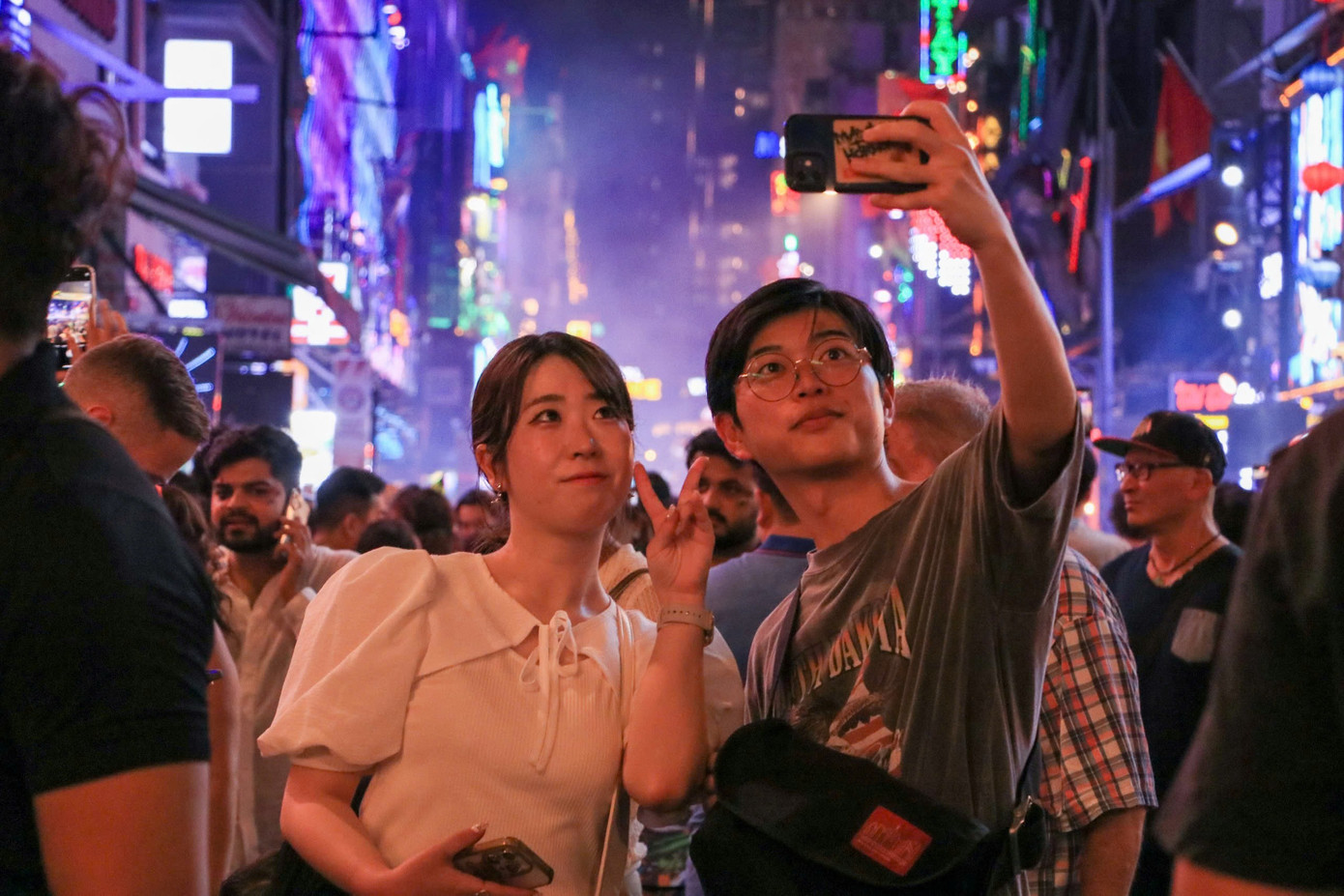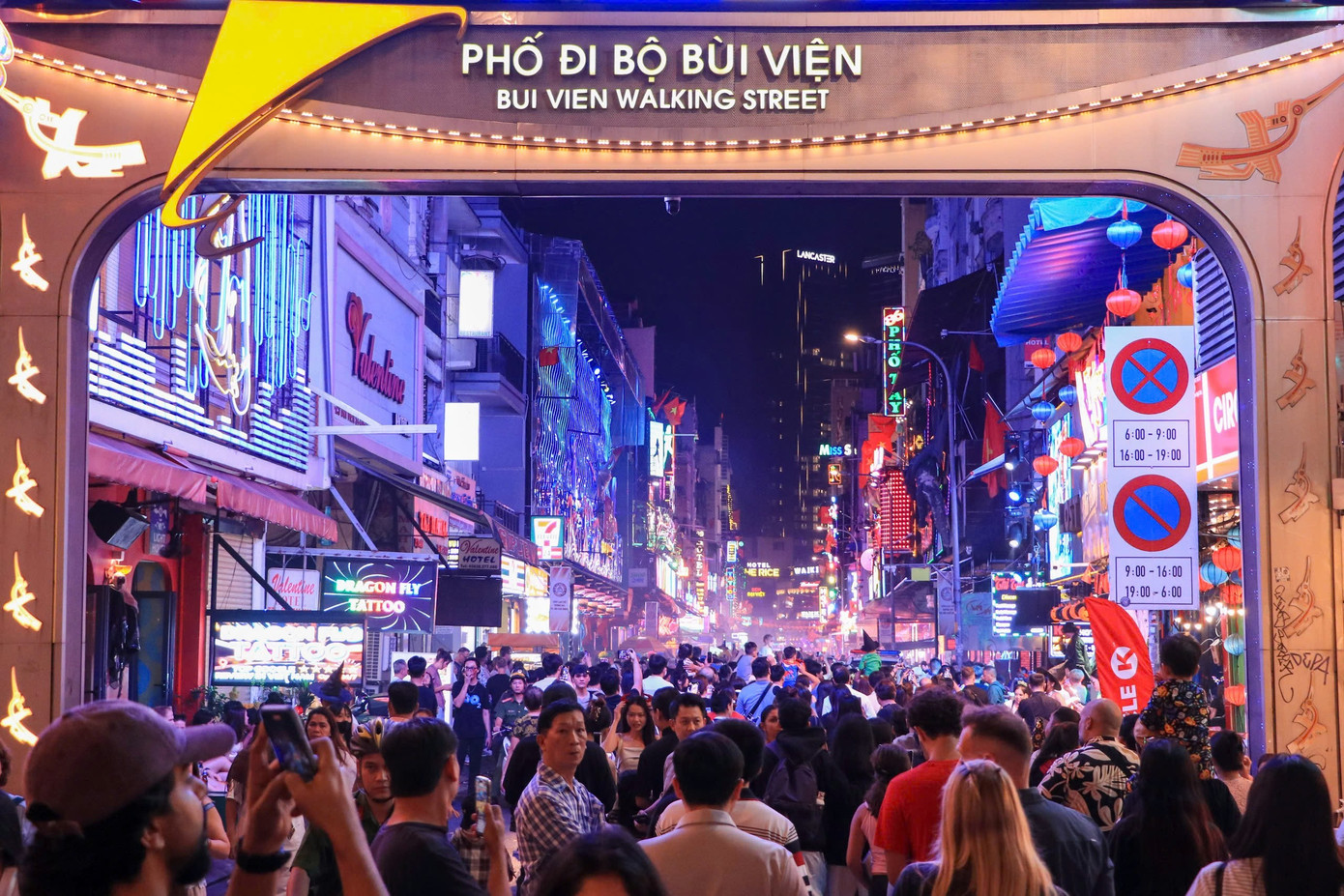 Nhiều du khách quốc tế thích thú check-in tại Phố đi bộ Bùi Viện.