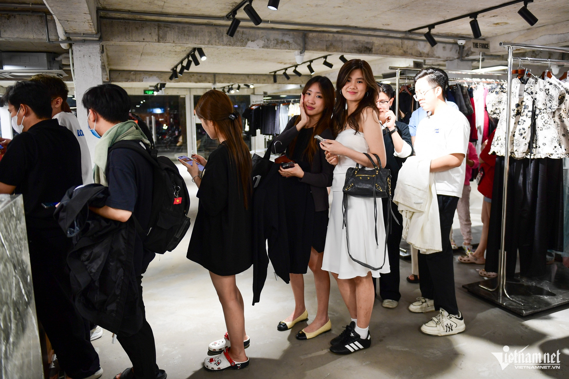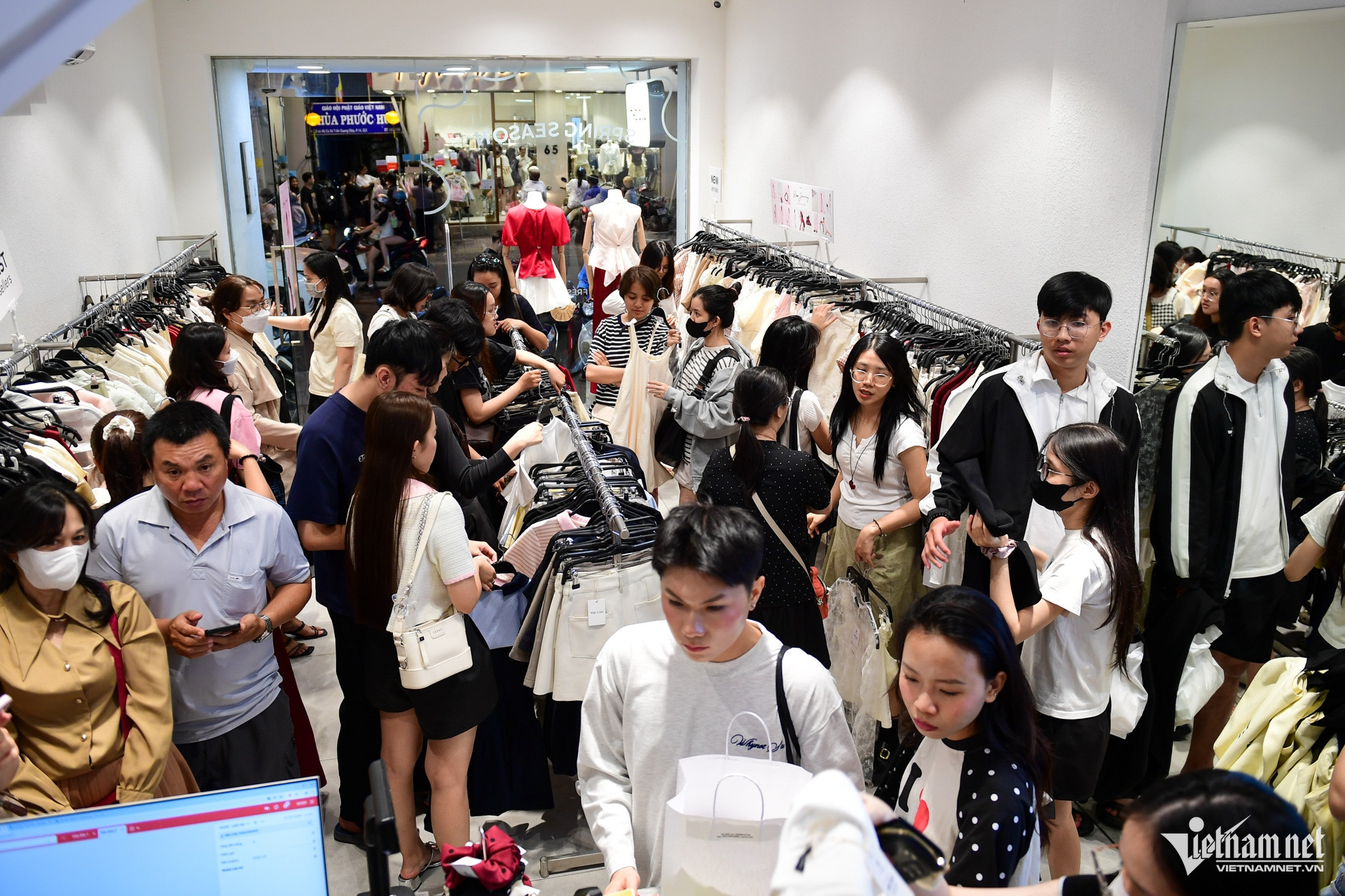 Không chỉ ở đường Trần Quang Diệu, nhiều điểm mua sắm khác trong khu vực cũng trong tình trạng đông đúc. Tại khu tổ hợp 11 Garmentory trên đường Nguyễn Đình Chính (phường Cầu Kiệu), dòng người liên tục xếp hàng chờ thử đồ và thanh toán.