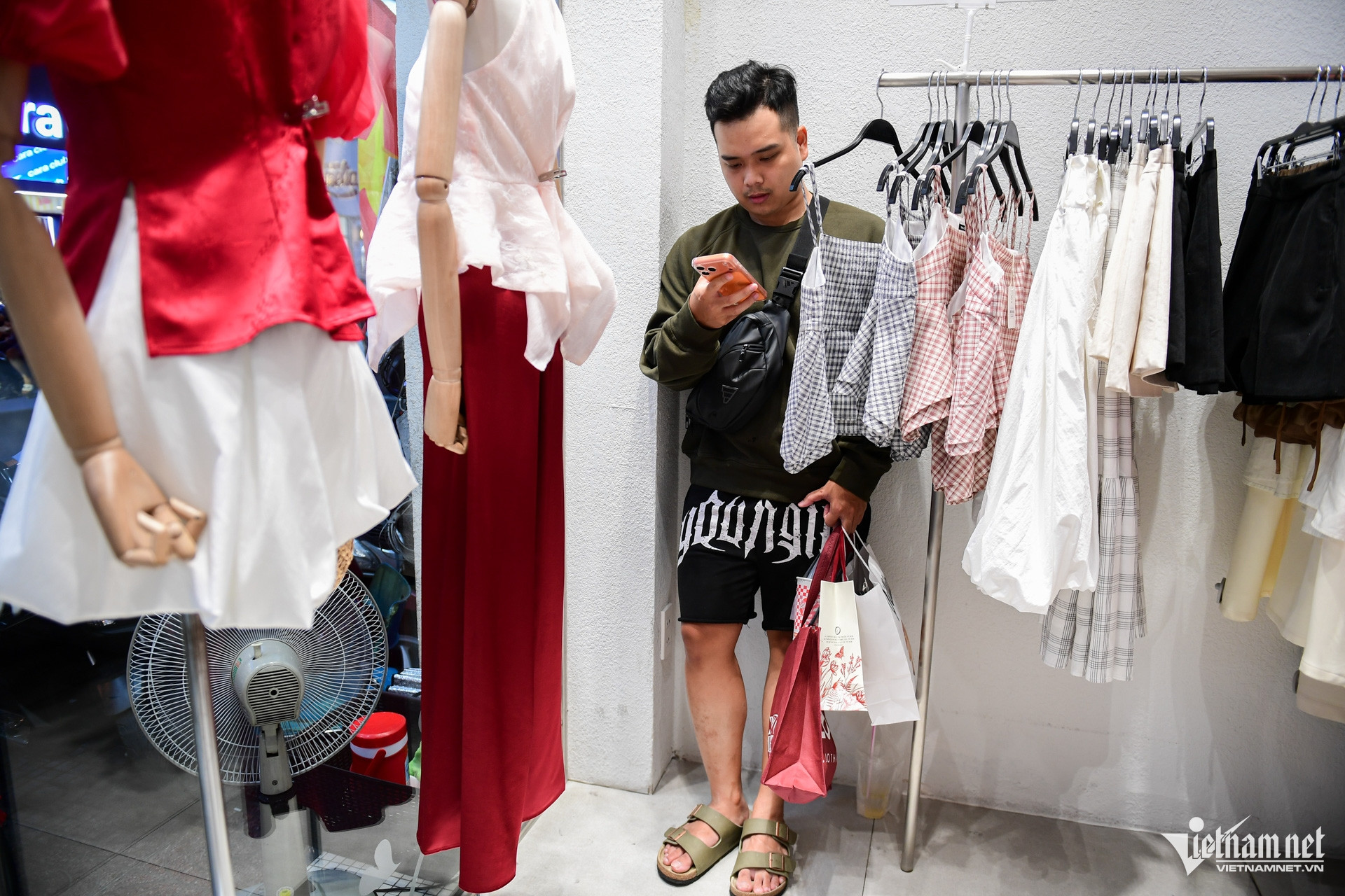 Anh Bùi Khắc Thành (phường Tân Thuận) cho biết, cùng bạn gái đi qua hơn 10 cửa hàng nhưng chỉ chọn được đồ ở 3 shop. “Tết đông nhưng vẫn muốn đi mua trực tiếp thay vì online. Không khí mua sắm những ngày này cũng rất vui”, anh chia sẻ.