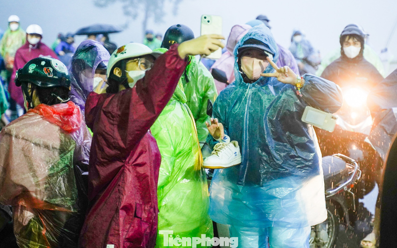 Tờ mờ sáng nay, nhiệt độ tại Vườn quốc gia Ba Vì chỉ khoảng 20–22 độ C, trời lạnh kèm theo mưa nhỏ. Nhiều bạn trẻ phải mặc áo mưa, khoác thêm áo ấm để vừa che mưa vừa giữ nhiệt khi di chuyển.