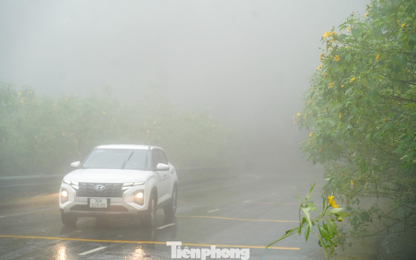 Đến khoảng 10h30, mưa nặng hạt, không khí càng lên cao càng mù mịt, nhiều bạn trẻ đành ra về khi chưa kịp chụp ảnh với hoa dã quỳ.