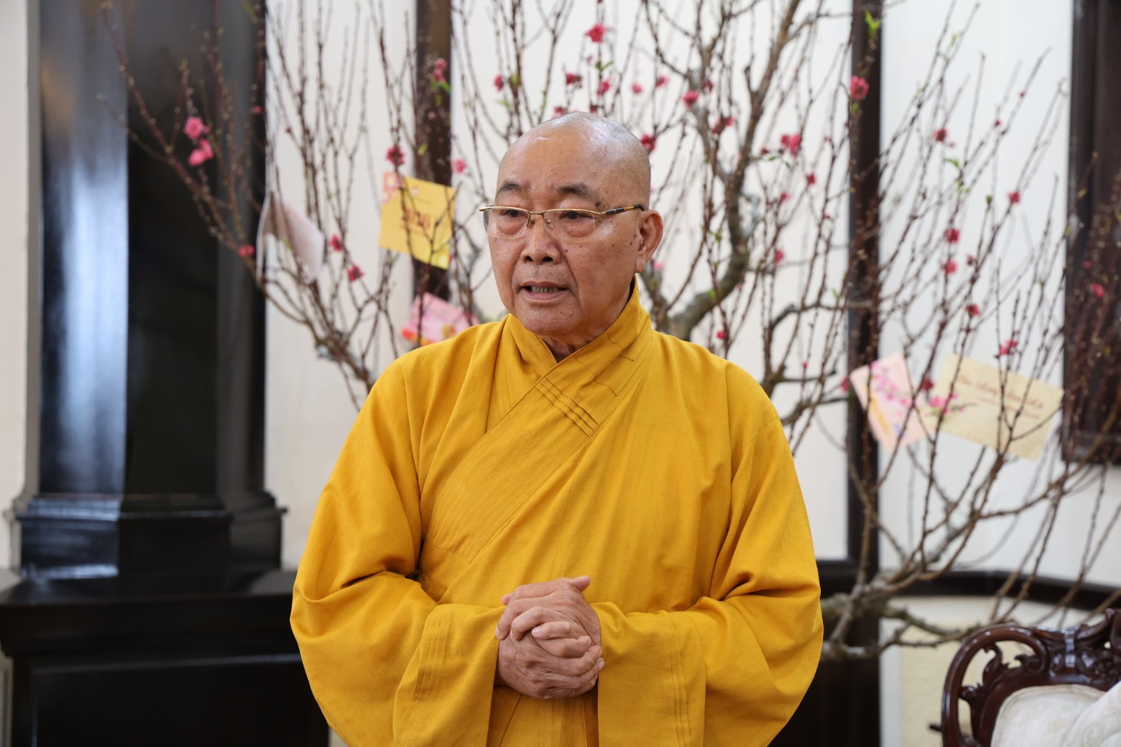 Hòa thượng Thích Minh Nhật, Ủy viên Hội đồng Trị sự, Trưởng Ban Trị sự GHPGVN tỉnh Lâm Đồng chia sẻ tại buổi gặp mặt