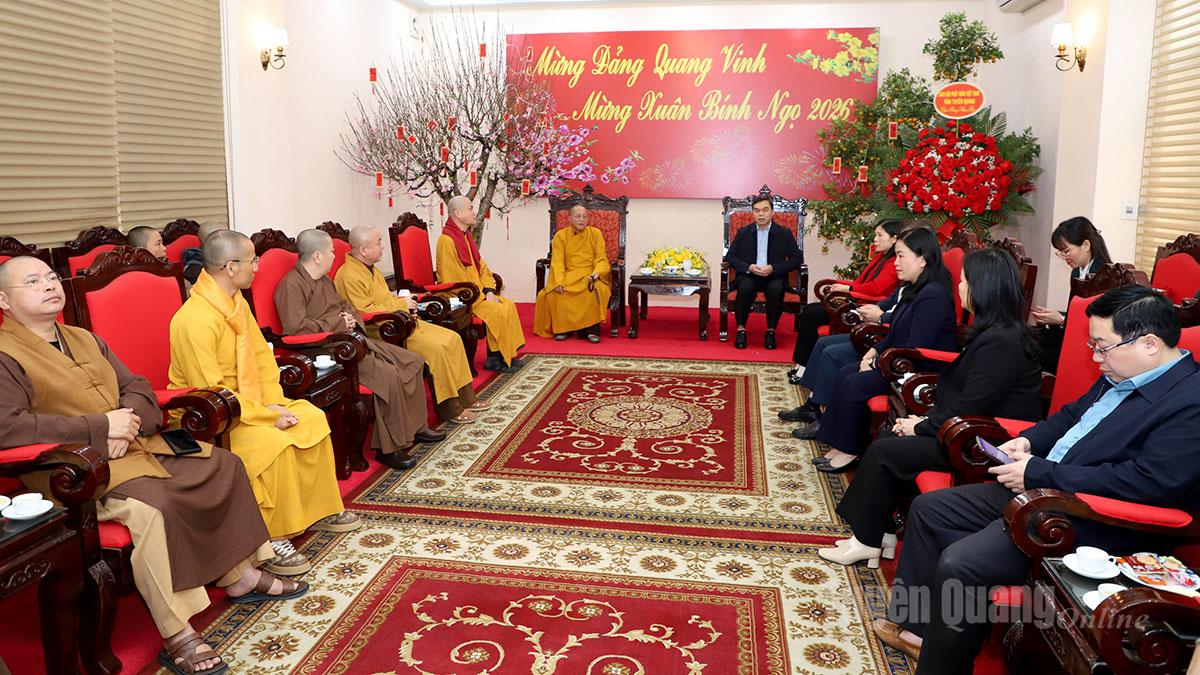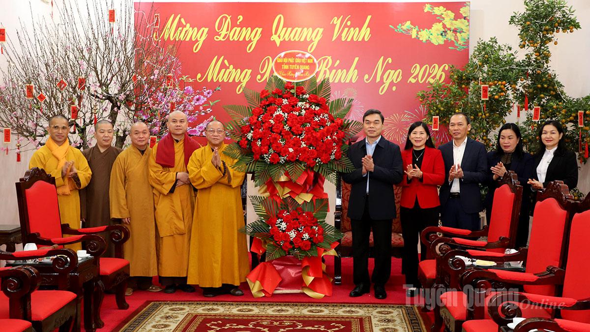 Đại diện Ban Trị sự Giáo hội Phật giáo tỉnh gửi lời chúc mừng năm mới an khang, thịnh vượng tới lãnh đạo tỉnh và toàn thể nhân dân trong tỉnh. Hòa thượng Thích Gia Quang bày tỏ tin tưởng dưới sự lãnh đạo, chỉ đạo của các đồng chí lãnh đạo, tỉnh Tuyên Quang sẽ đạt được những thành tựu nổi bật trong năm 2026 và những năm tiếp theo.