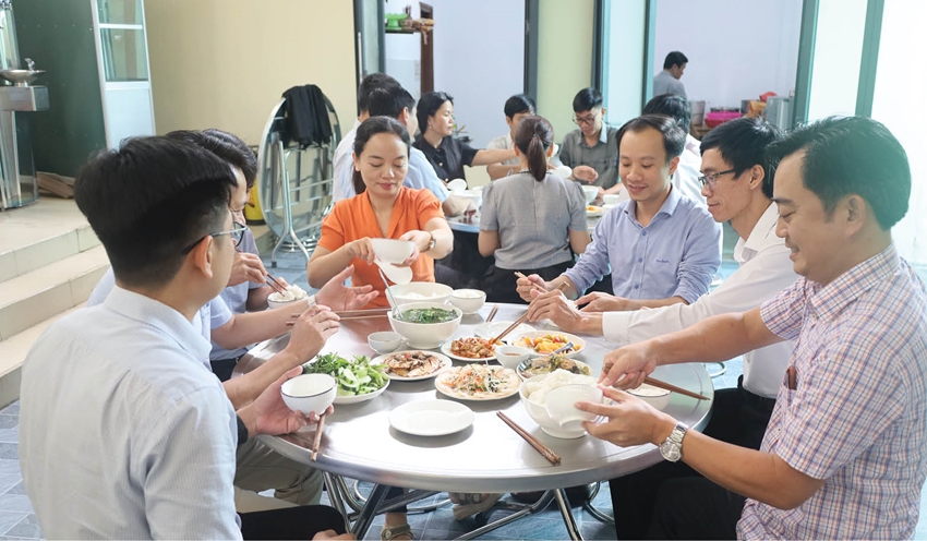 Những ngày đầu tổ chức ăn tập trung, một số người còn ngại nhưng càng ăn chung lâu ngày càng vui, anh Thắng kể. Trên bàn ăn, chuyên môn nghiệp vụ được chia sẻ, kinh nghiệm được truyền nhau. Không ít lần, sau khi ăn xong, mọi người quay trở lại bàn làm việc ngay vì còn những việc cần làm gấp.