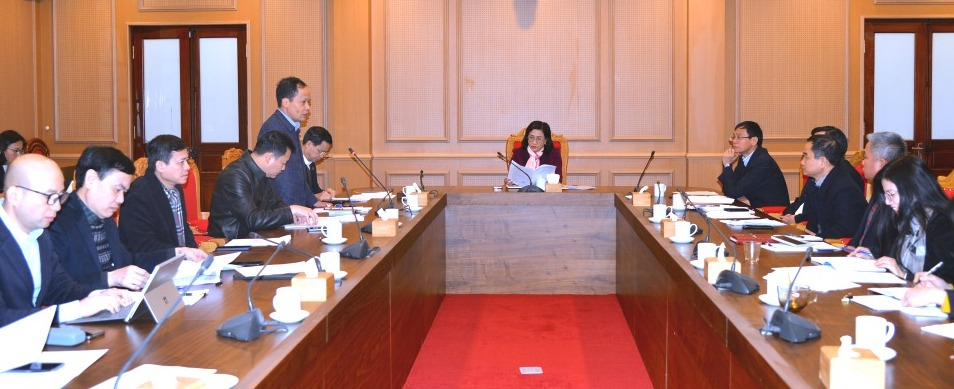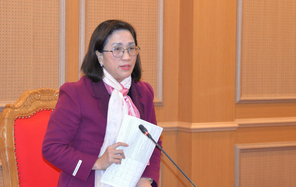 Phó trưởng Ban Tuyên giáo và Dân vận Trung ương Đinh Thị Mai phát biểu tại cuộc họp.