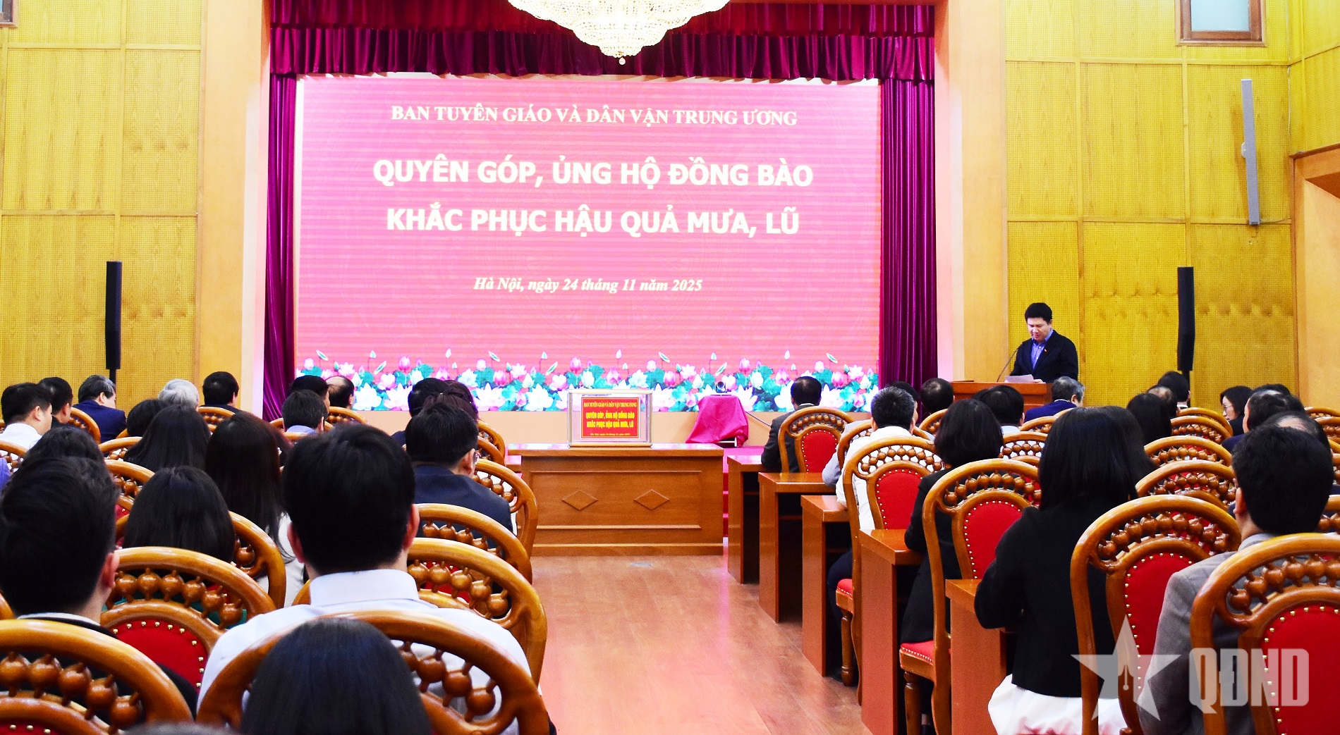 Trong những ngày vừa qua, mưa lũ đã gây thiệt hại rất nghiêm trọng tại các tỉnh Gia Lai, Đắk Lắk, Khánh Hòa, Lâm Đồng và một số địa phương khác. Phát huy tinh thần “tương thân, tương ái”, để góp phần chia sẻ những khó khăn, mất mát đau thương với đồng bào bị thiệt hại nặng nề bởi thiên tai, tại buổi quyên góp, lãnh đạo Ban Tuyên giáo và Dân vận Trung ương, lãnh đạo các vụ, đơn vị và toàn thể cán bộ, công chức, người lao động của Ban Tuyên giáo và Dân vận Trung ương đã tham gia quyên góp ủng hộ với tinh thần tự nguyện, mỗi người đóng góp tối thiểu một ngày lương nhằm giúp người dân các địa phương vượt qua khó khăn, sớm ổn định cuộc sống.
