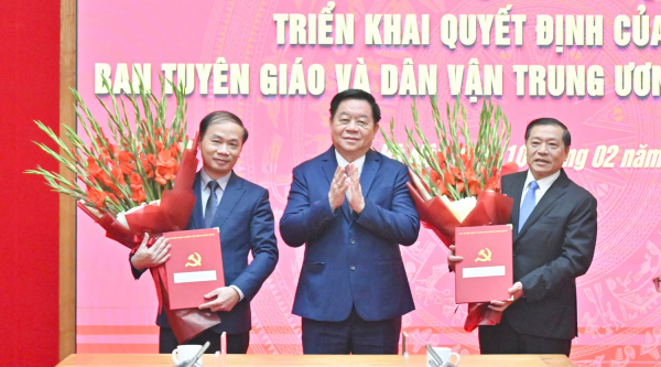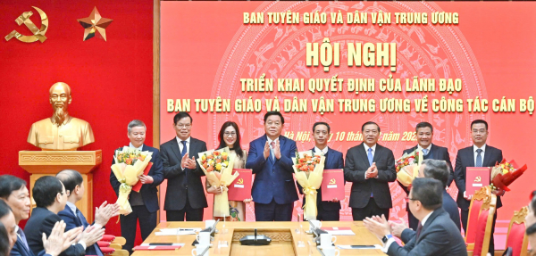 Trưởng Ban Tuyên giáo và Dân vận Trung ương Nguyễn Trọng Nghĩa và lãnh đạo Ban đã trao các quyết định về bổ nhiệm cán bộ lãnh đạo các vụ, đơn vị.