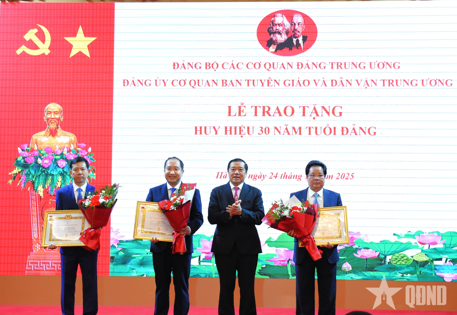 Lãnh đạo Ban Tuyên giáo và Dân vận Trung ương trao Huy hiệu 30 năm tuổi Đảng tặng các đảng viên.