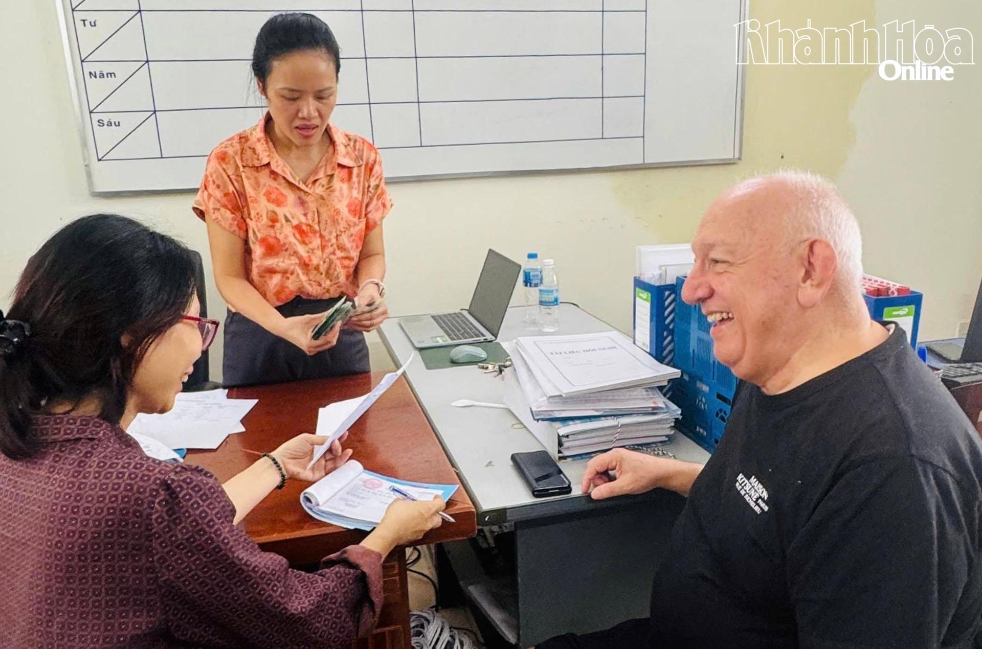 Một du khách nước ngoài đóng góp vào Quỹ Cứu trợ tỉnh.