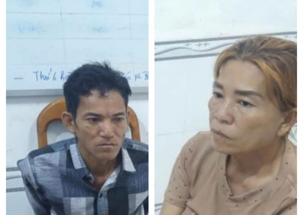 Vợ chồng Hoàng Em và Thanh tại cơ quan Công an.
