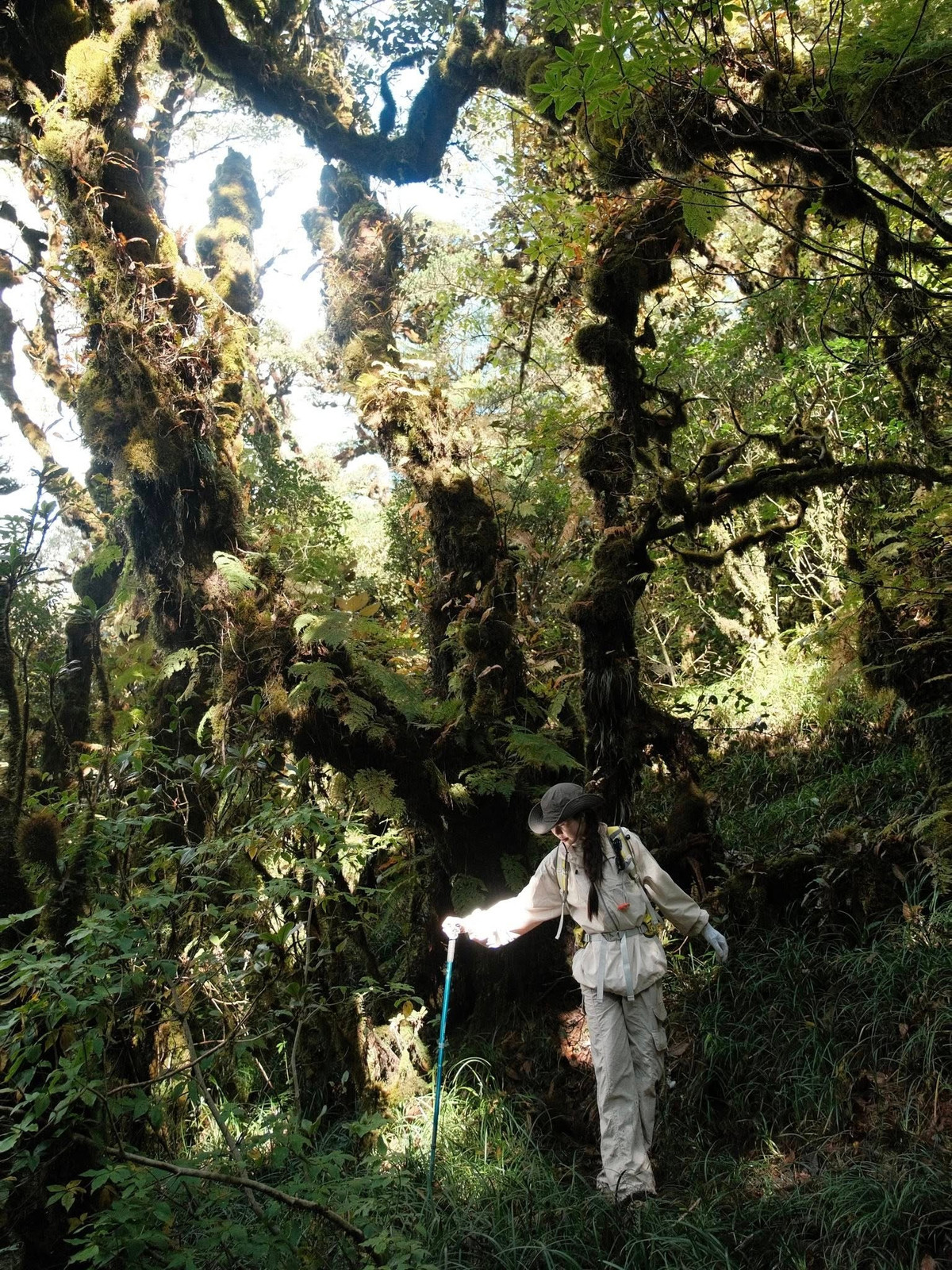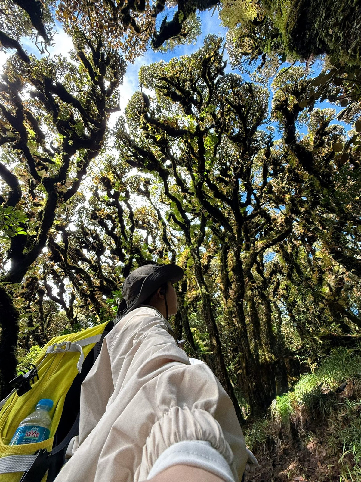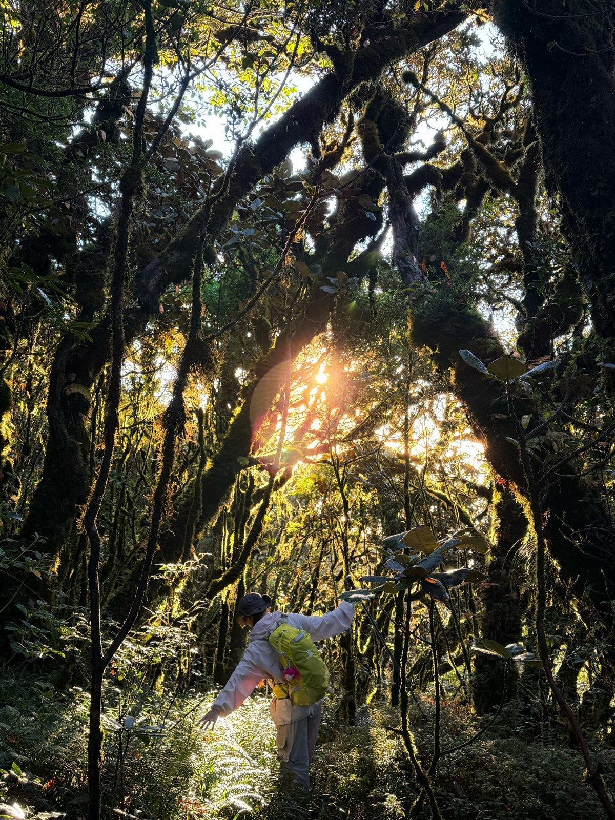 Trên đường lên đỉnh, du khách đi qua những tán cây cổ thụ hàng trăm năm tuổi, tận hưởng mùi rừng ẩm, tiếng chim và cảnh quan hùng vĩ của rừng nguyên sinh. Mỗi bước chân là cơ hội cảm nhận vẻ đẹp hoang sơ của núi rừng Tây Bắc, từ biển mây bồng bềnh đến núi non trùng điệp. Ảnh Huyen Anh