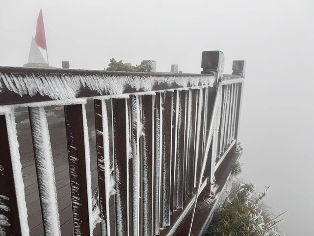 Lớp băng trắng xóa bao trùm "nóc nhà Đông Dương" không chỉ phản ánh mức độ rét sâu của đợt không khí lạnh lần này mà còn mang đến những hình ảnh hiếm gặp, thu hút sự chú ý của du khách và người dân.