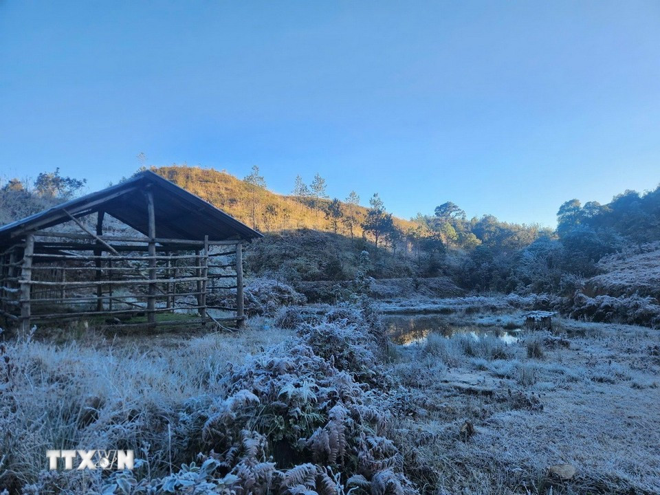 Rạng sáng 29/11, nhiều khu vực thuộc xã Y Tý (Lào Cai) tiếp tục ghi nhận băng giá khi nhiệt độ giảm sâu xuống 3–5°C. Đây là đợt băng giá thứ hai xuất hiện chỉ trong vòng vài ngày, khiến vùng núi cao này khoác lên màu trắng tinh khôi đặc trưng của mùa đông vùng biên.
