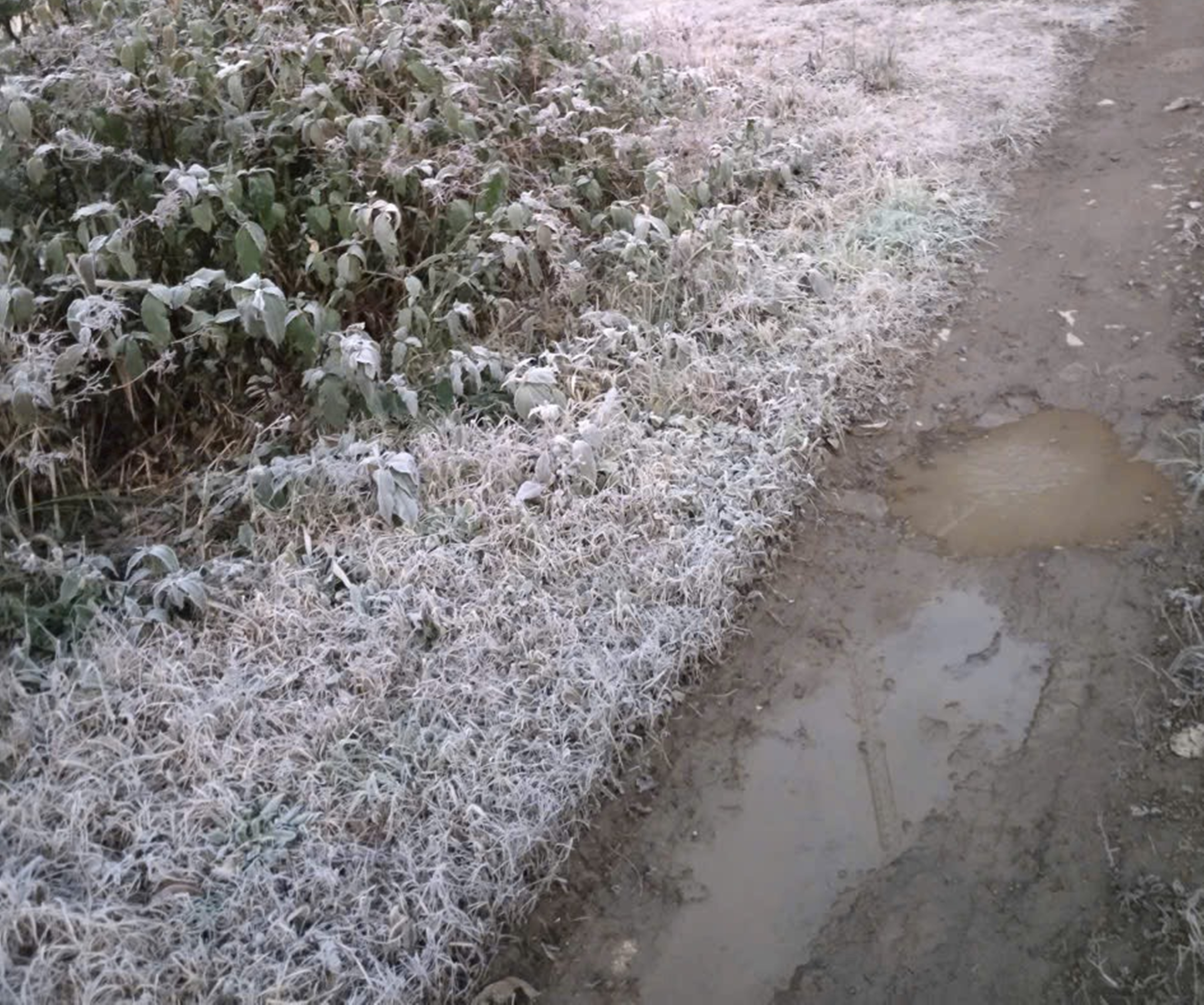 Khi nền nhiệt chạm ngưỡng âm, các lớp sương bám trên cây cối, thảm cỏ, mặt đất, vườn tăng gia sản xuất nhanh chóng bị đóng băng, tạo thành các mảng băng trắng xóa.