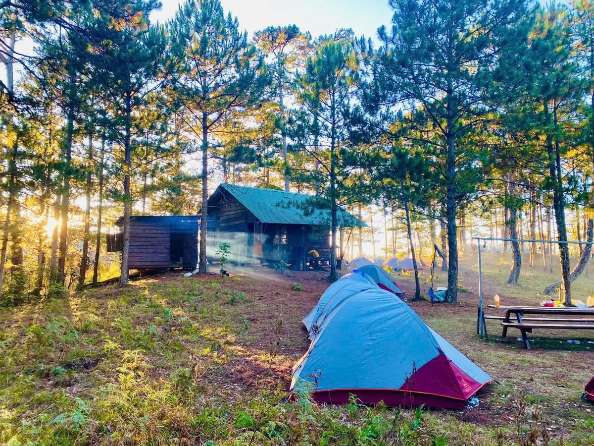 Buổi tối giữa rừng là trải nghiệm đáng nhớ. Du khách cắm trại, quây quần bên bữa ăn giản dị, tận hưởng cái lạnh se sắt của núi cao và sự yên bình hiếm có giữa thiên nhiên.