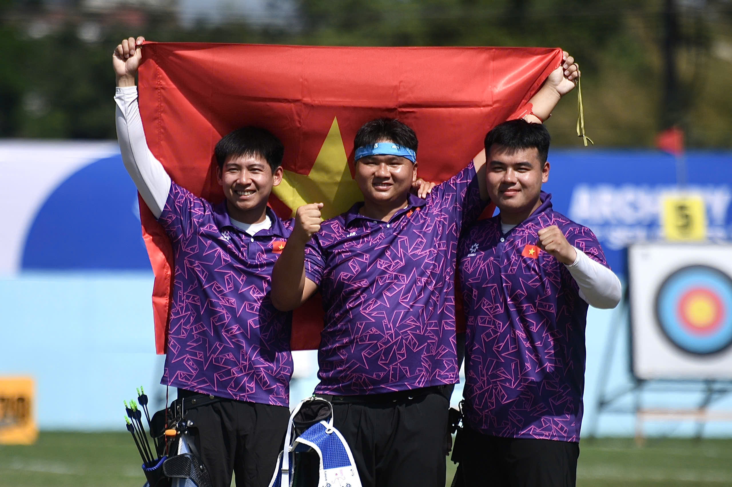 11h16: Ở nội dung bắn cung cung 1 dây nam, đội tuyển Việt Nam với các VĐV Lê Quốc Phong, Nguyễn Duy và Nguyễn Minh Đức để thua Indonesia trong trận chung kết, qua đó giành huy chương bạc.