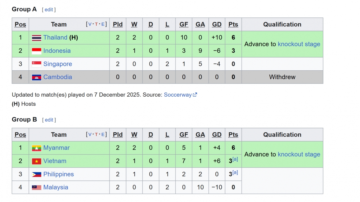 Tính đến sáng 11/12, cuộc đua giành vé vào bán kết môn bóng đá nam SEA Games 33 bước vào giai đoạn quyết định. Ở bảng A, U22 Thái Lan tạm dẫn đầu với 3 điểm. Chỉ cần không thua Singapore ở lượt trận cuối, đội chủ nhà sẽ giành ngôi nhất bảng và tiến vào bán kết.