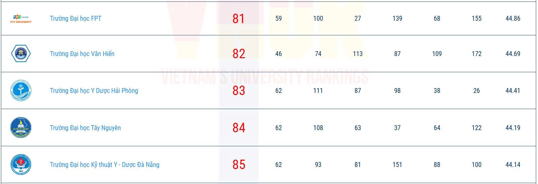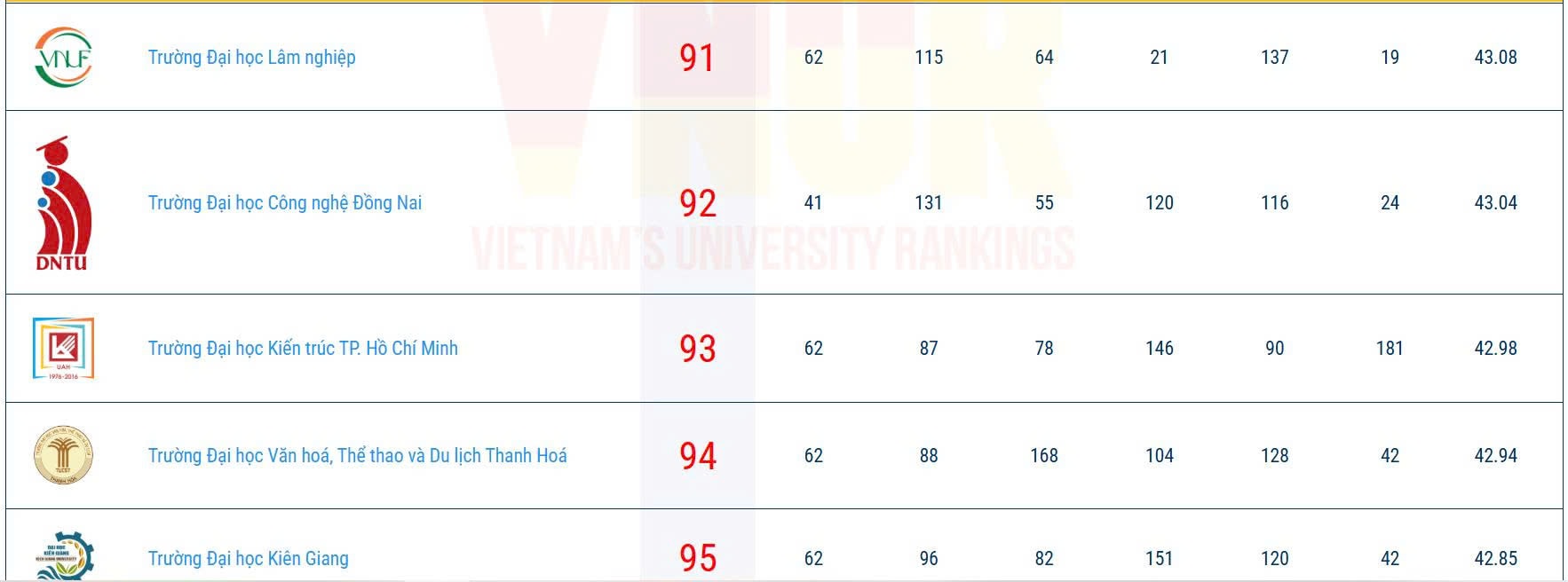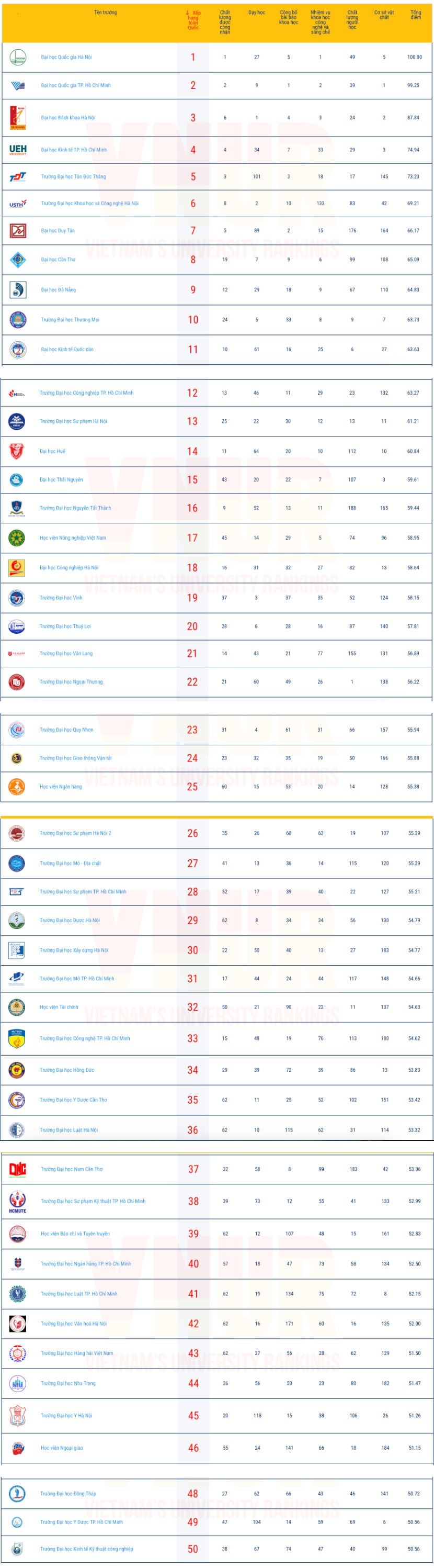 Sau đây là Top 100 trường đại học tốt nhất Việt Nam theo VNUR: