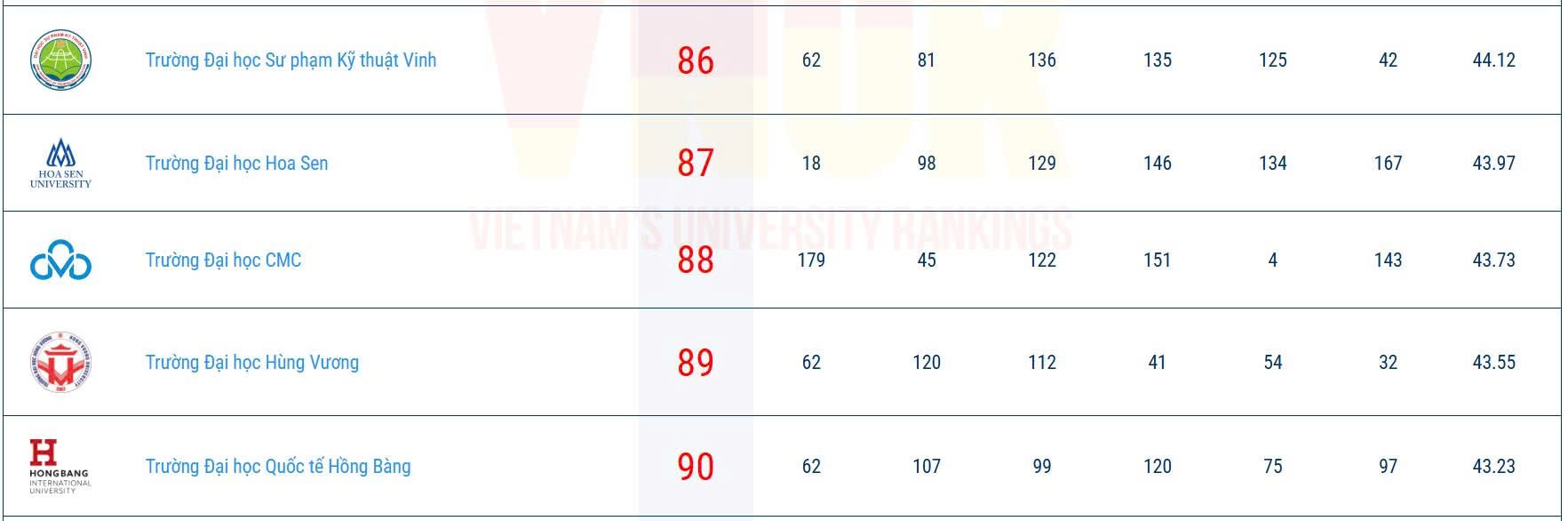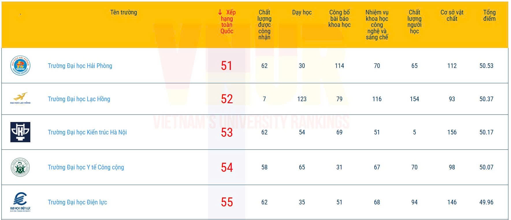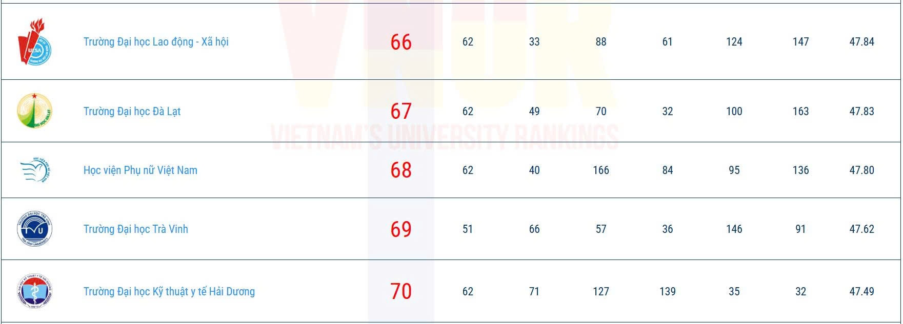 Sau đây là Top 100 trường đại học tốt nhất Việt Nam theo VNUR: