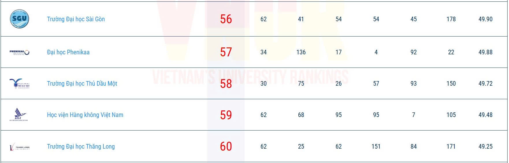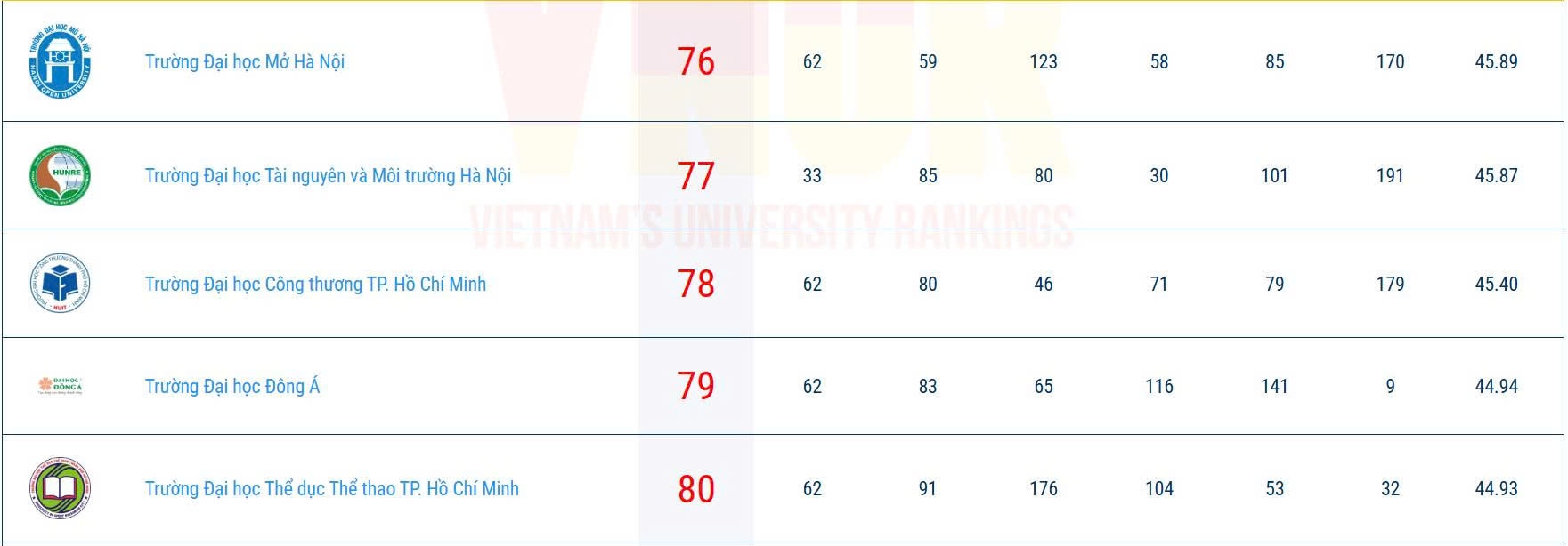 Đại học Bách khoa Hà Nội, Đại học Kinh tế TP. Hồ Chí Minh và Trường Đại học Tôn Đức Thắng duy trì thứ hạng trong Top 5, không thay đổi so với năm 2025.