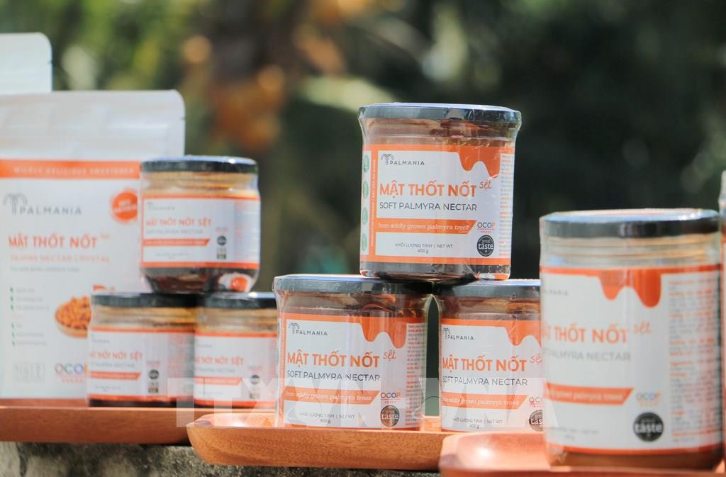 Các sản phẩm đường thốt nốt của Công ty Cổ phần Palmania (xã Tri Tôn, tỉnh An Giang) đạt chuẩn OCOP 5 sao cấp quốc gia. Ảnh: Công Mạo-TTXVN