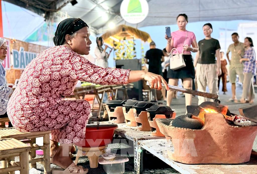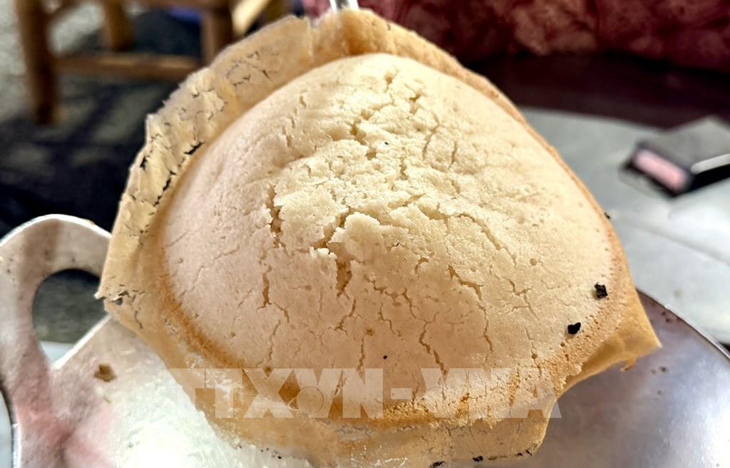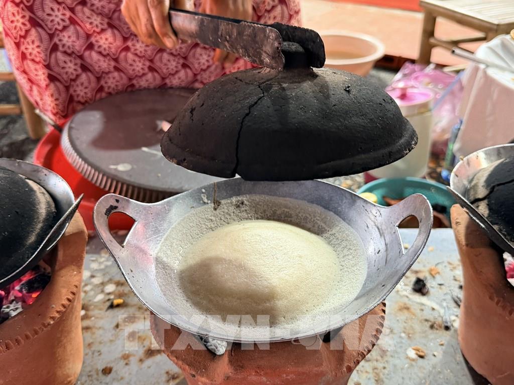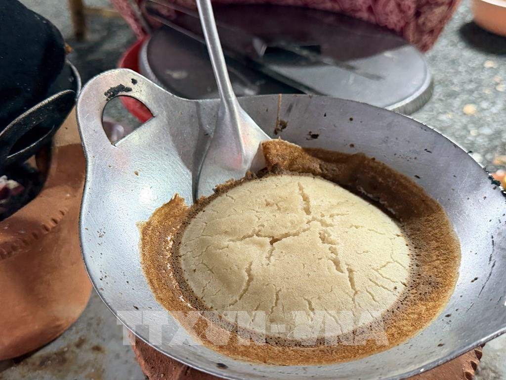 Bánh được nướng trên khuôn gang truyền thống, tỏa hương thơm hấp dẫn. Ảnh: Thanh Sang - TTXVN