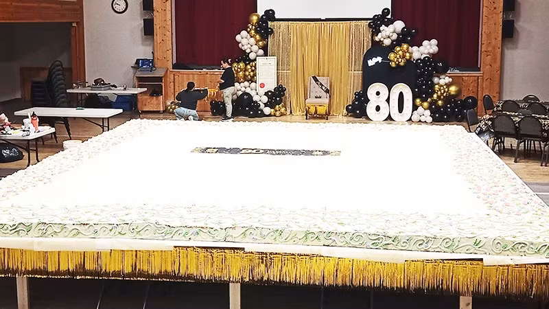 Ông Ted Martindale cho biết phải mất hơn một tháng để nướng 430 chiếc bánh riêng lẻ tạo nên sản phẩm cuối cùng, thành phần gồm gần 800 kg cà rốt, hơn 300 kg bơ, hàng nghìn quả trứng và hơn 900 kg kem phủ.