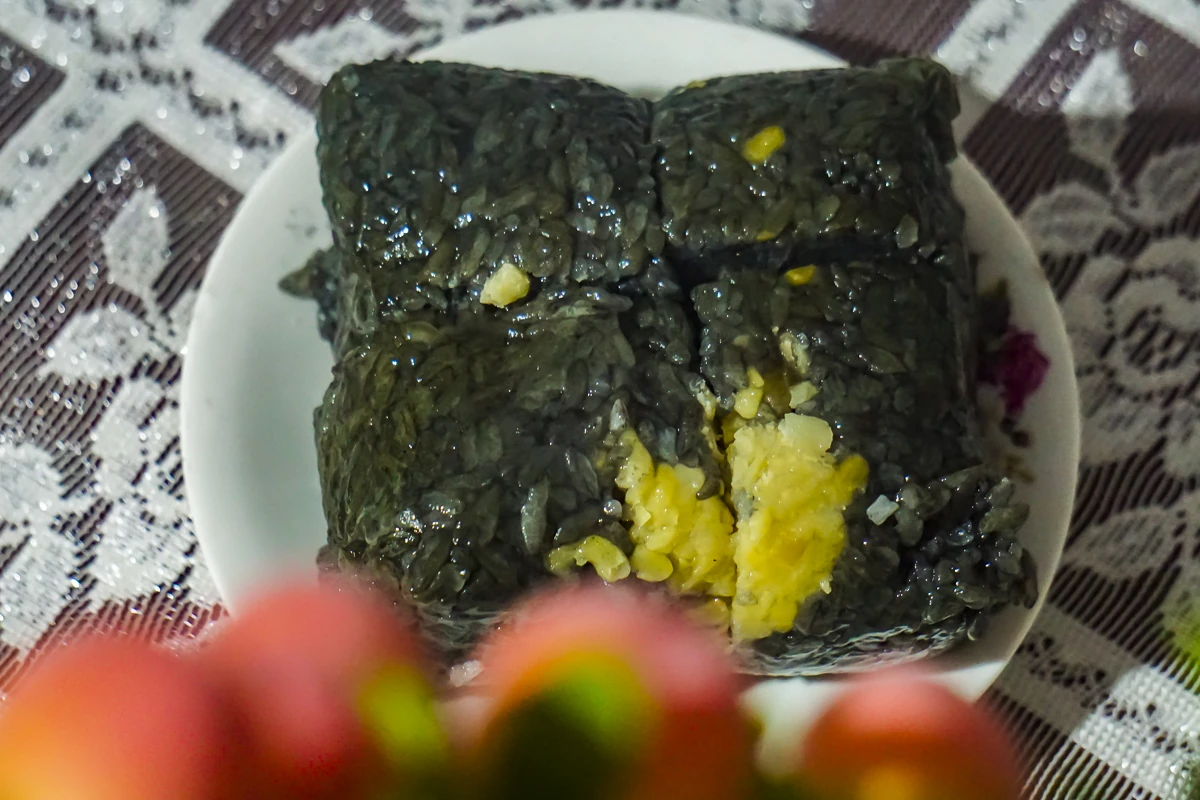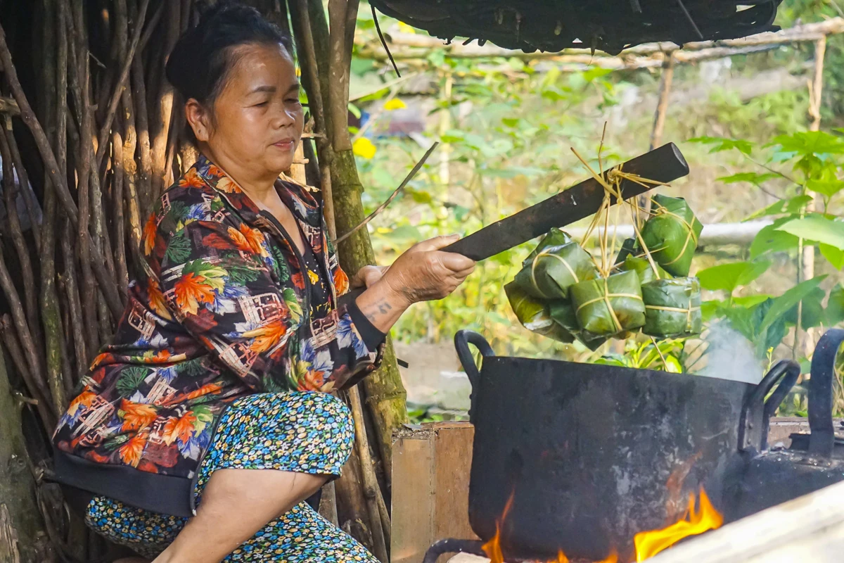 Phần tro mịn ấy được trộn vào gạo nếp đã vo sạch, để ráo. Khi trộn đúng tỷ lệ, từng hạt nếp chuyển dần sang màu đen óng, ánh lên sắc trầm sâu. “Tro cây vừng cho mùi thơm rất riêng, không lẫn với thứ gì khác. Nếu pha không khéo, bánh sẽ bị nặng mùi”, bà Lang Thị Chiến chia sẻ.