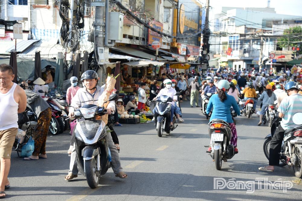 Còn tại khu vực phường Mỹ Tho, Đạo Thạnh, trong sáng 29 tết, không khí mua sắm cũng rất sôi động. Ghi nhận tại chợ Thạnh Trị (phường Đạo Thạnh) vào sáng 29 tết, rất đông người dân đến chợ để mua sắm. Các điểm bán hoa chưng tết tấp nập người ra vào.