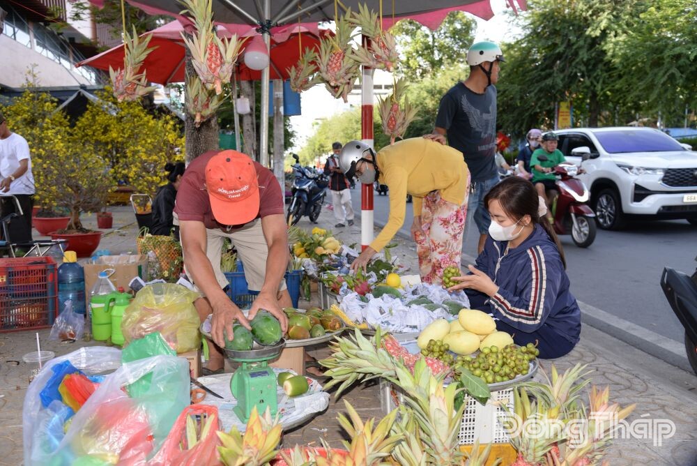 Bên cạnh các chợ truyền thống, các điểm bán hoa, trái cây chưng tết dọc theo các tuyến đường lớn cũng nhộn nhịp cảnh mua bán. Anh Hải, người dân bán trái cây trên tuyến đường Lê Lợi cho biết, sức mua trái cây trong sáng 29 tết tăng so với ngày 28, nhưng cũng không bằng những năm trước.