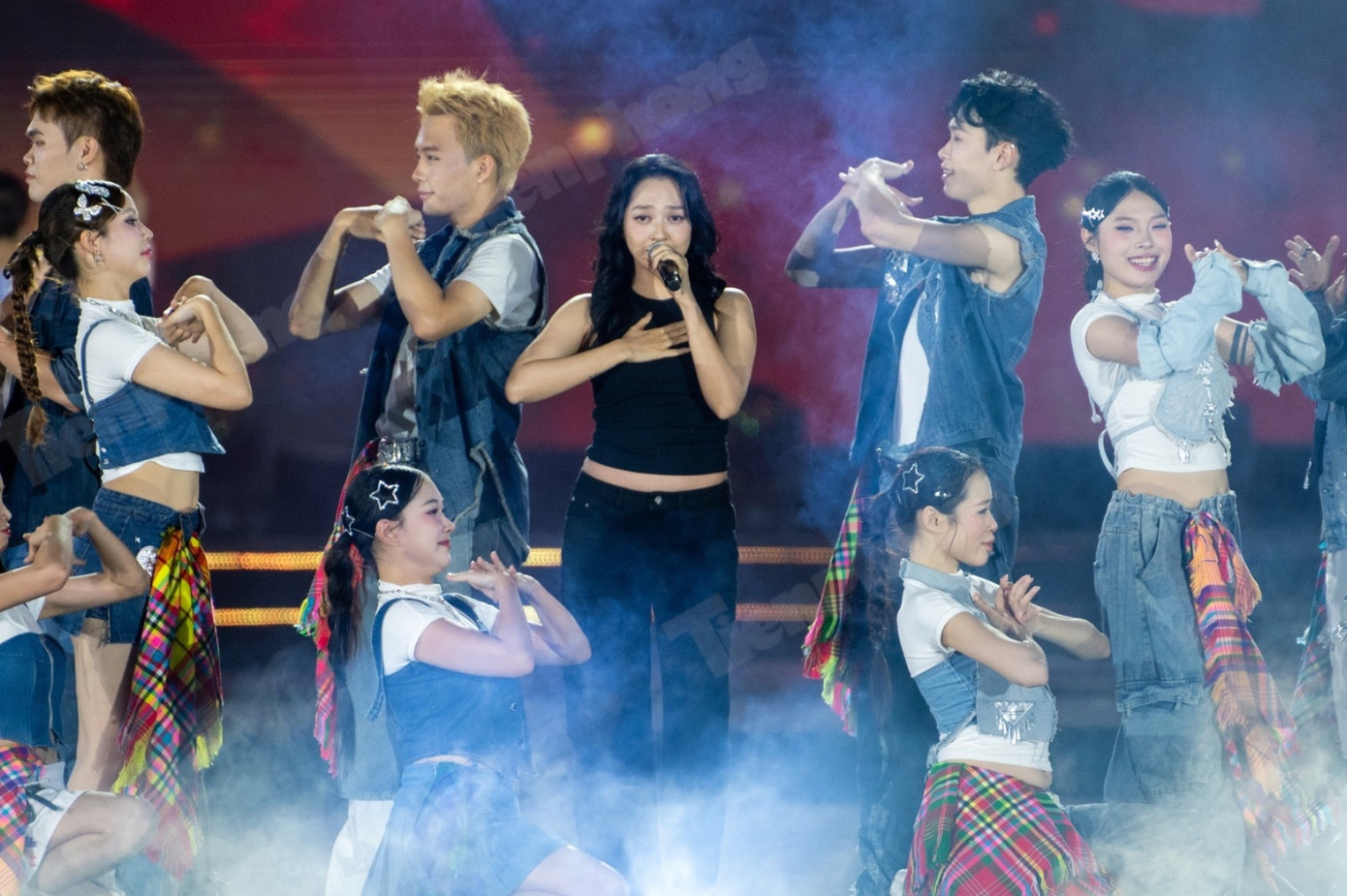 Bảo Anh mờ nhạt giữa dàn vũ công. Ảnh: Quốc Nam.