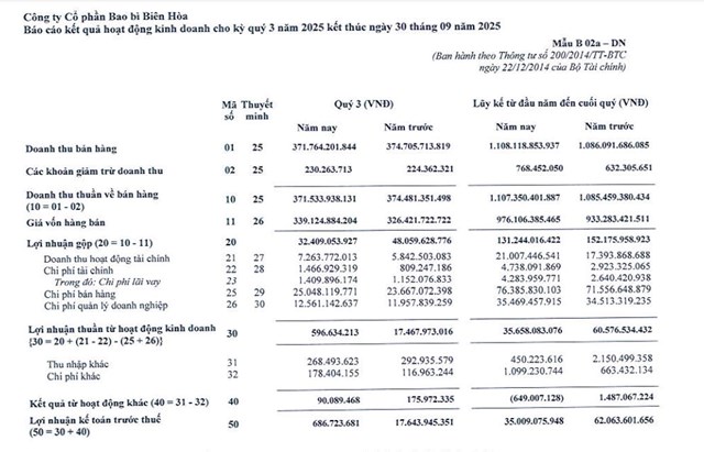 Từ khi về tay người Thái, Bao bì Biên Hòa giữ kết quả kinh doanh khá ổn định. Doanh thu giai đoạn 2021-2024 duy trình quanh 1.500 - 1.800 tỷ đồng. Lợi nhuận sau thuế có năm vượt trăm tỷ nhưng đã lùi về mốc gần 76 tỷ đồng trong năm 2024.