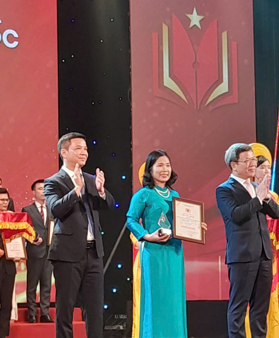 Tác giả Nguyễn Thúy Hằng, đại diện cho nhóm tác giả Báo Cao Bằng nhận giải.