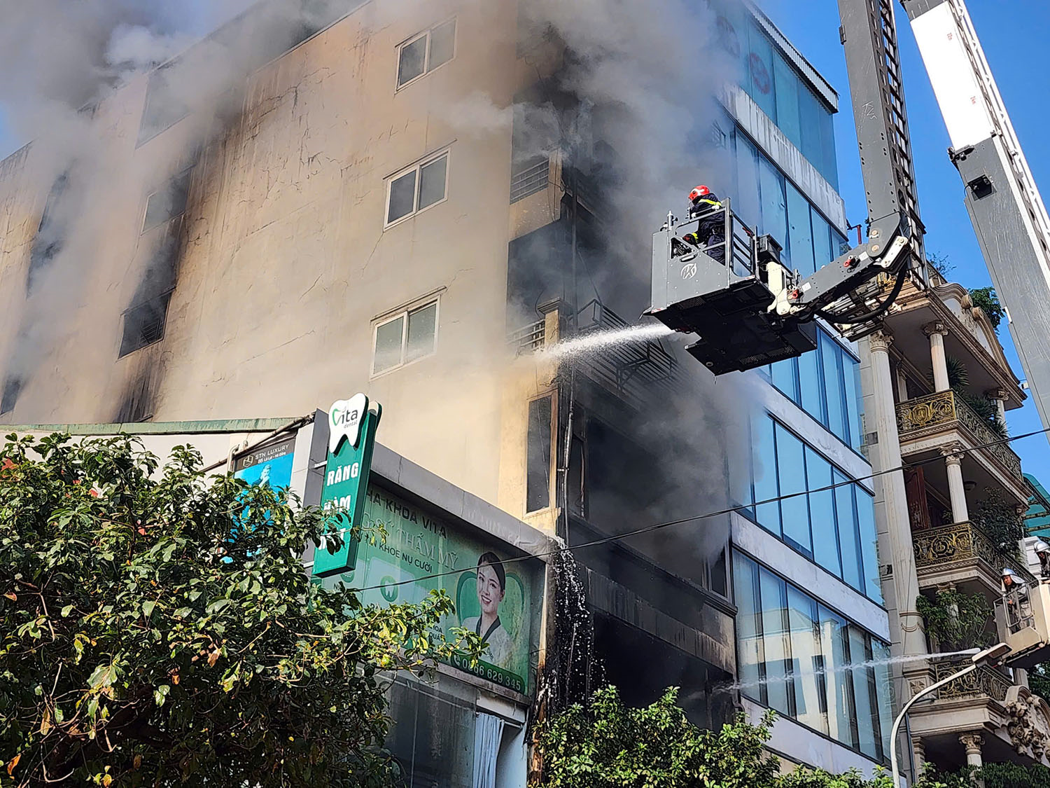 Lực lượng chức năng chữa cháy nhà 6 tầng ở phố Lê Lợi, phường Hà Đông, TP Hà Nội (tháng 1-2026). Ảnh: TUẤN SƠN